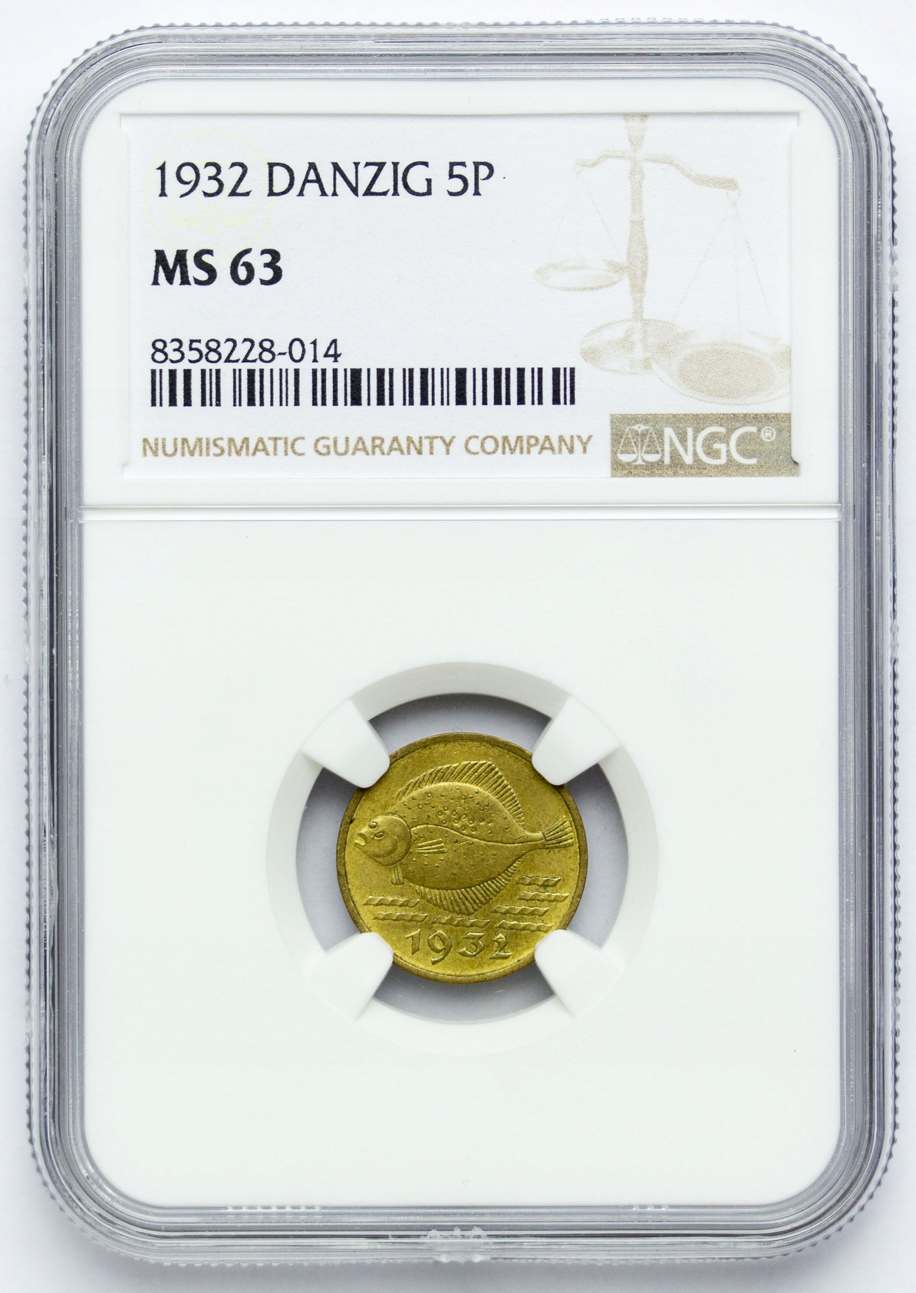 Свободный город Гданьск, 5 Fenigs 1932, Frejra, NGC MS63