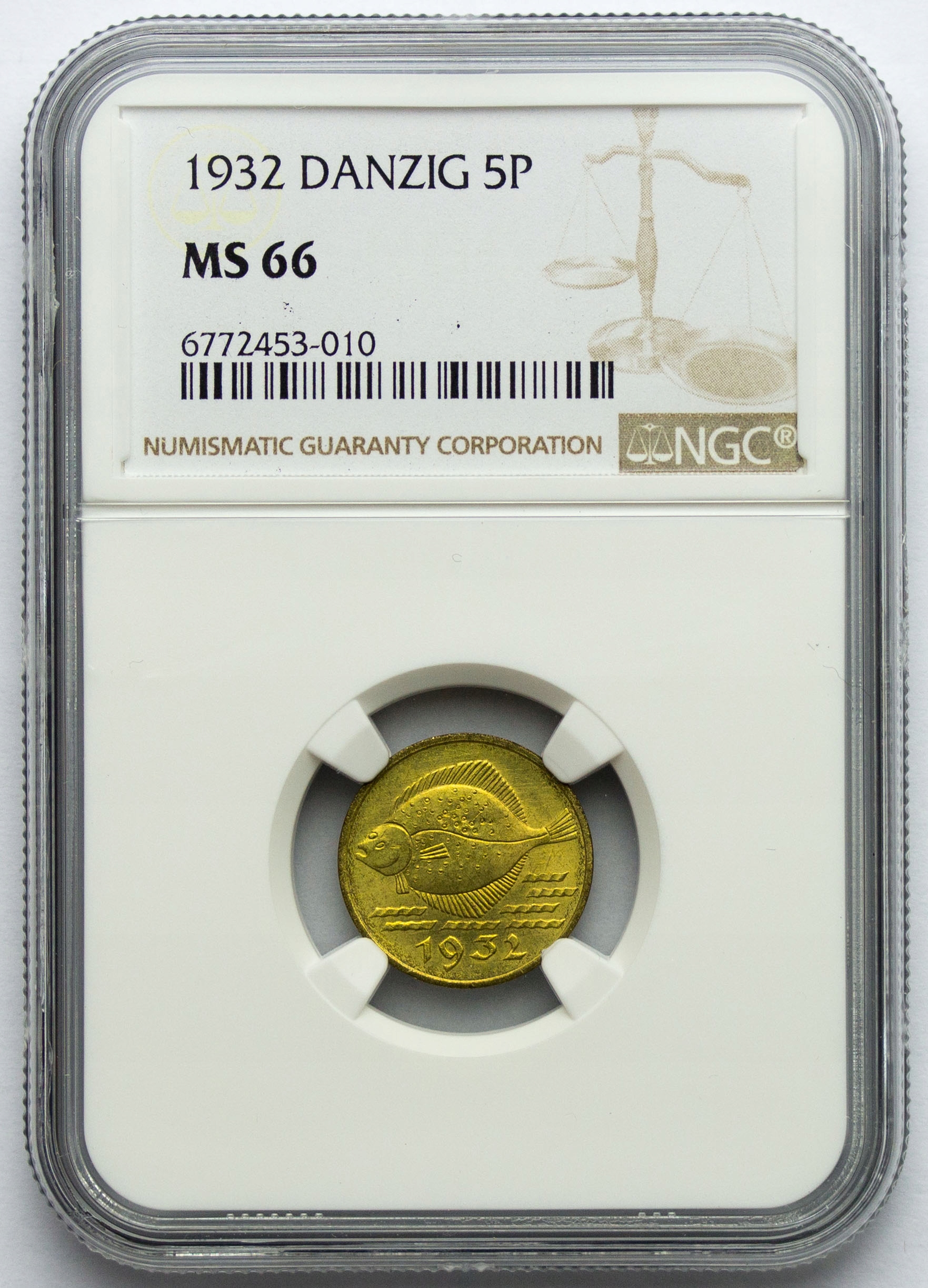 Свободный город Гданьск, 5 Fenigs 1932, Frejra, NGC MS66, замечательный