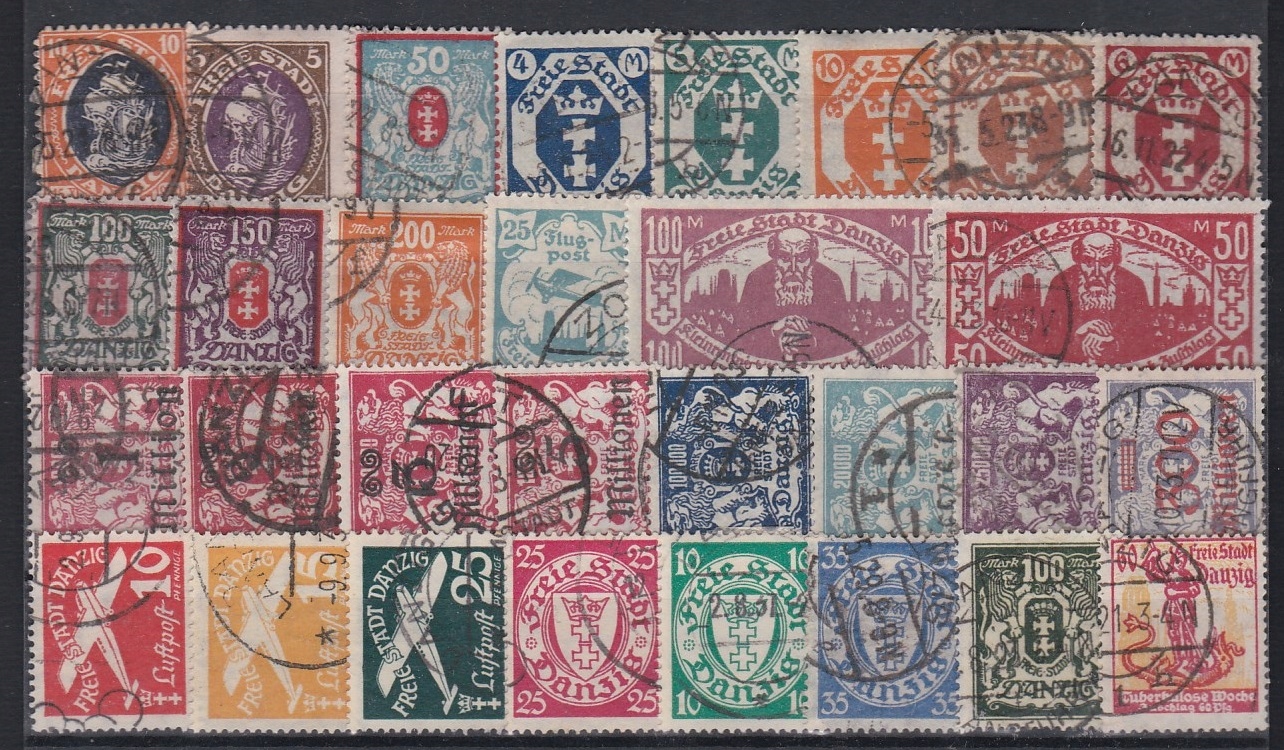 Бесплатный город Гданьск - старые почтовые марки, набор.