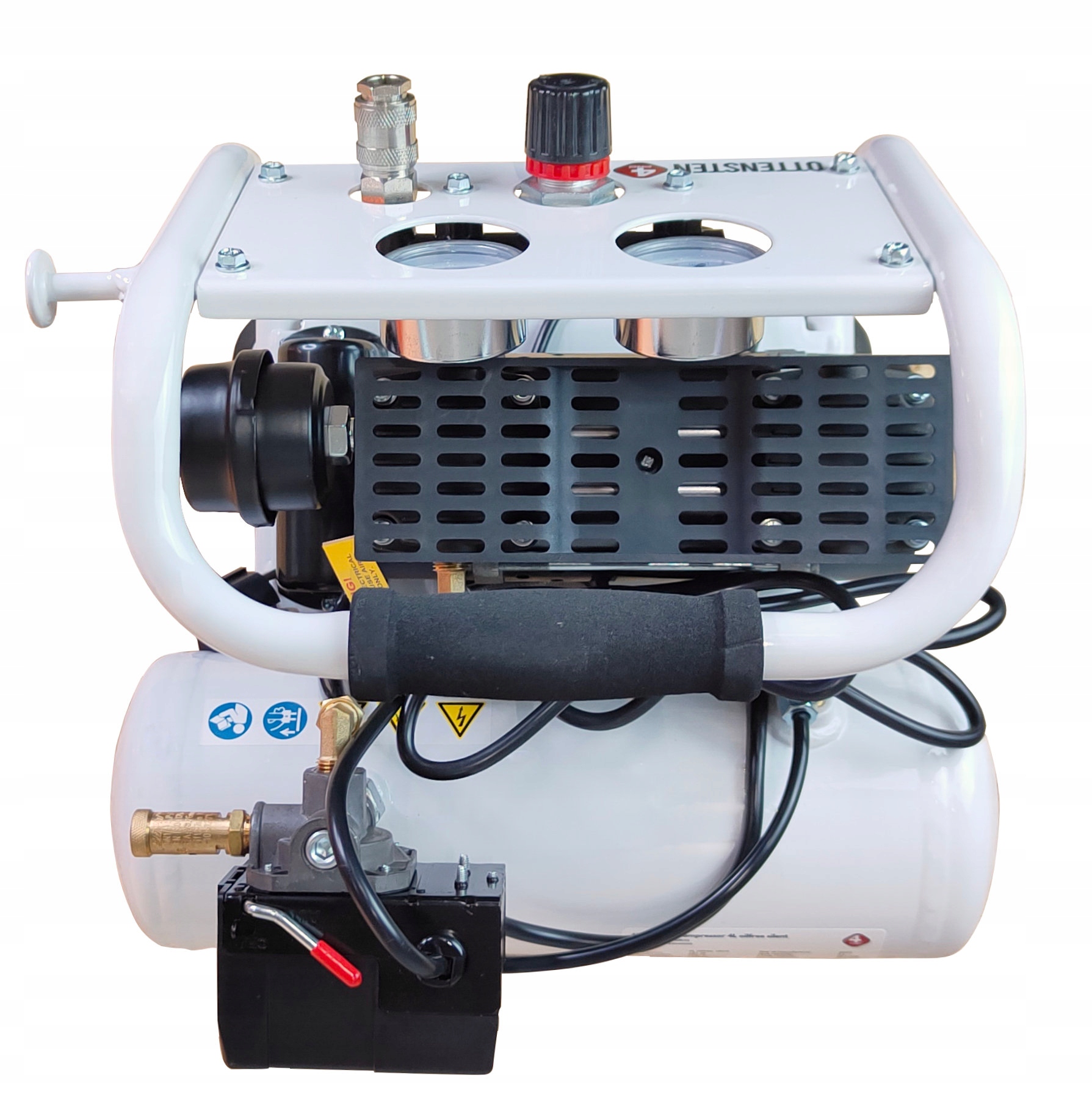 Тихий безмасляный компрессор 58дБ, 2-цилиндровый компрессор самообслуживания 4л 8бар