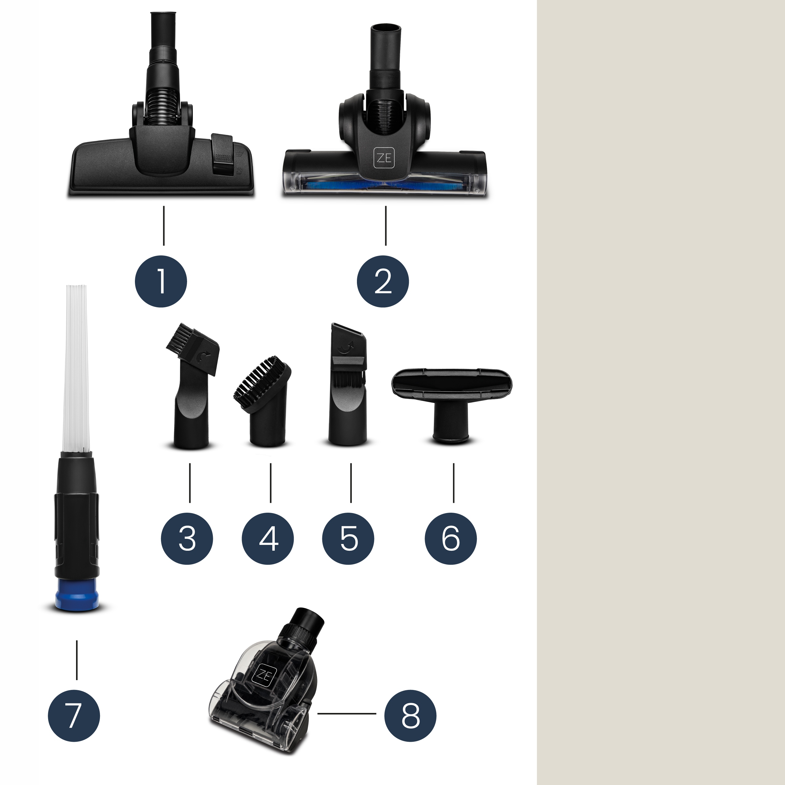 Благодаря многочисленным насадкам, входящим в комплект пылесоса, Zonder Base работает практически на любых типах поверхностей. В комплект входят: