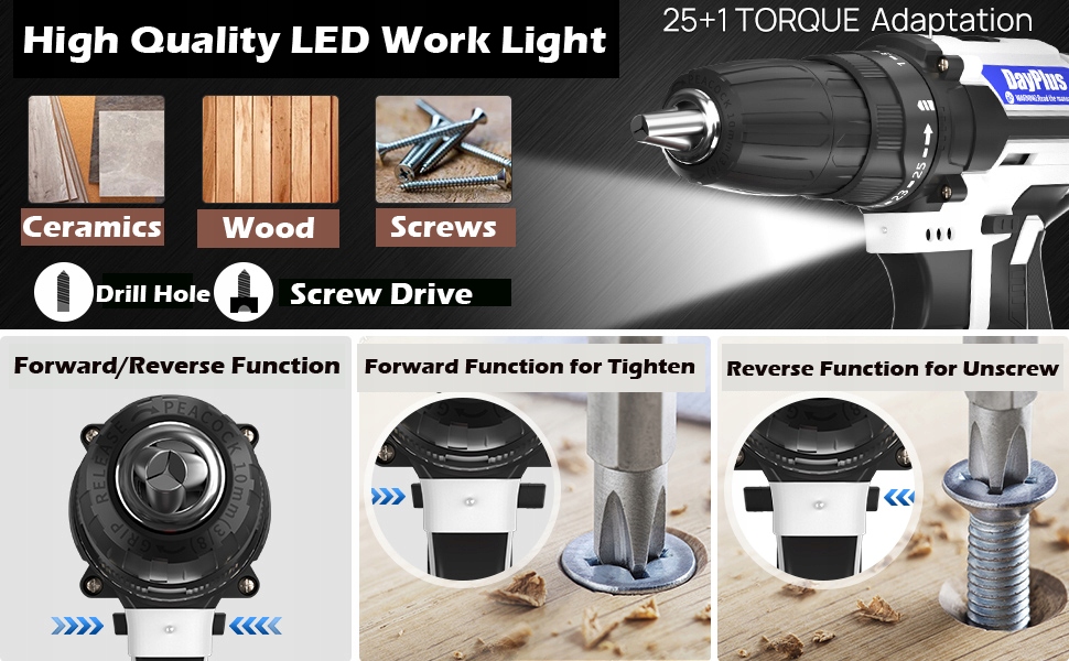бухгалтер и обратно с передней и обратной функцией оборота, идеально подходит для домашнего ремонта, независимая установка обоев, ремонт автомобилей, бурение в дереве, металл, пластик, а также для всех работ, связанных с привинчивающимися винтовыми.