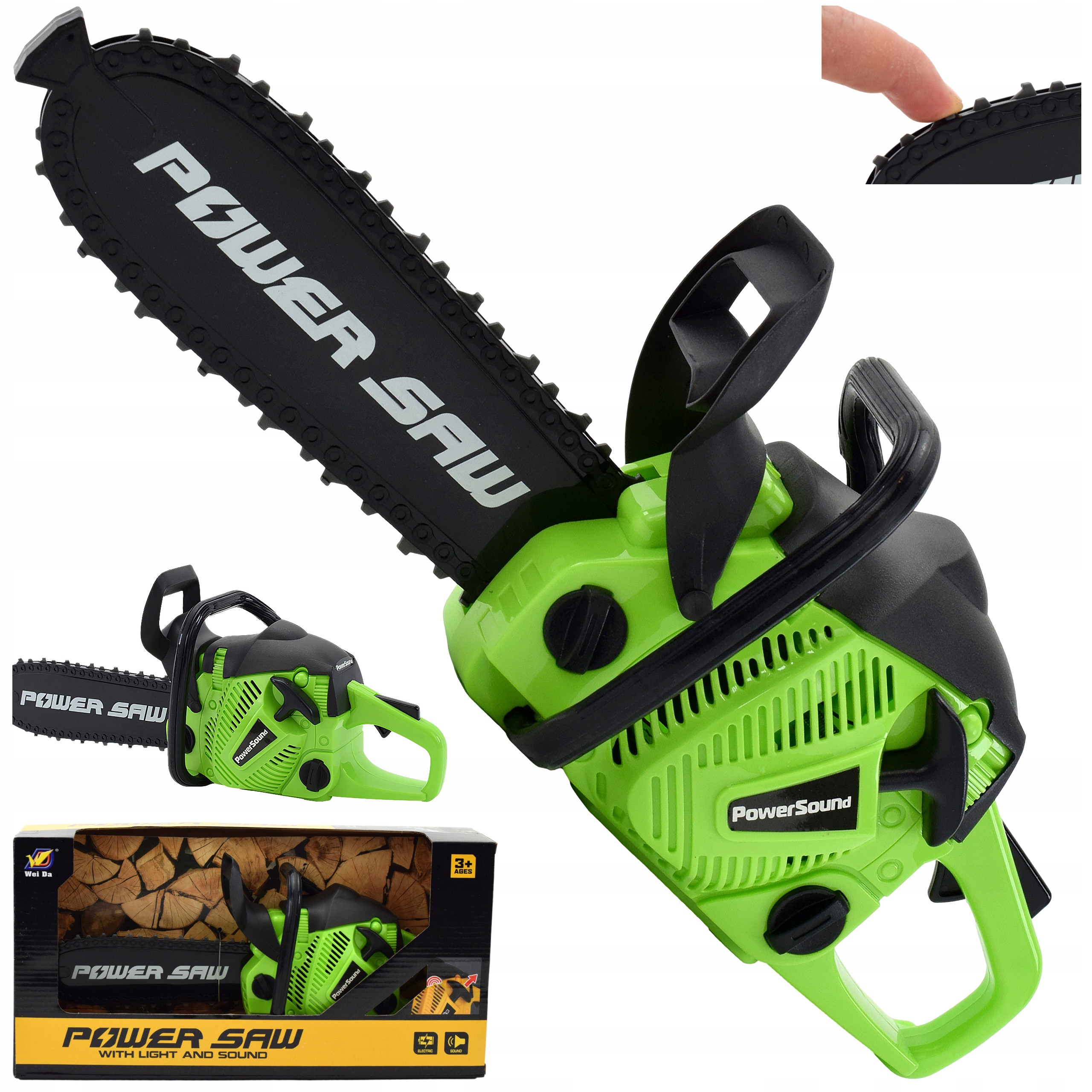 Когда вы тянете за ручку, чтобы запустить пилу, она начинает издавать звук двигателя, а когда вы нажимаете педаль газа, она издает звуки резки дерева. Пила доставит массу творческих развлечений, которые будут развивать воображение ребенка.