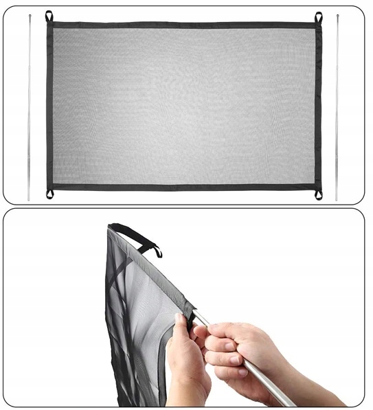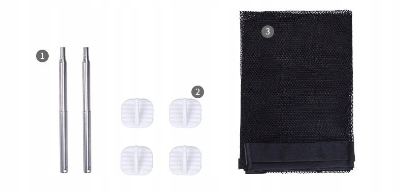 В комплекте: крючки самоклеящиеся (4 шт) и телескопические металлические стойки жесткости (2 шт)
