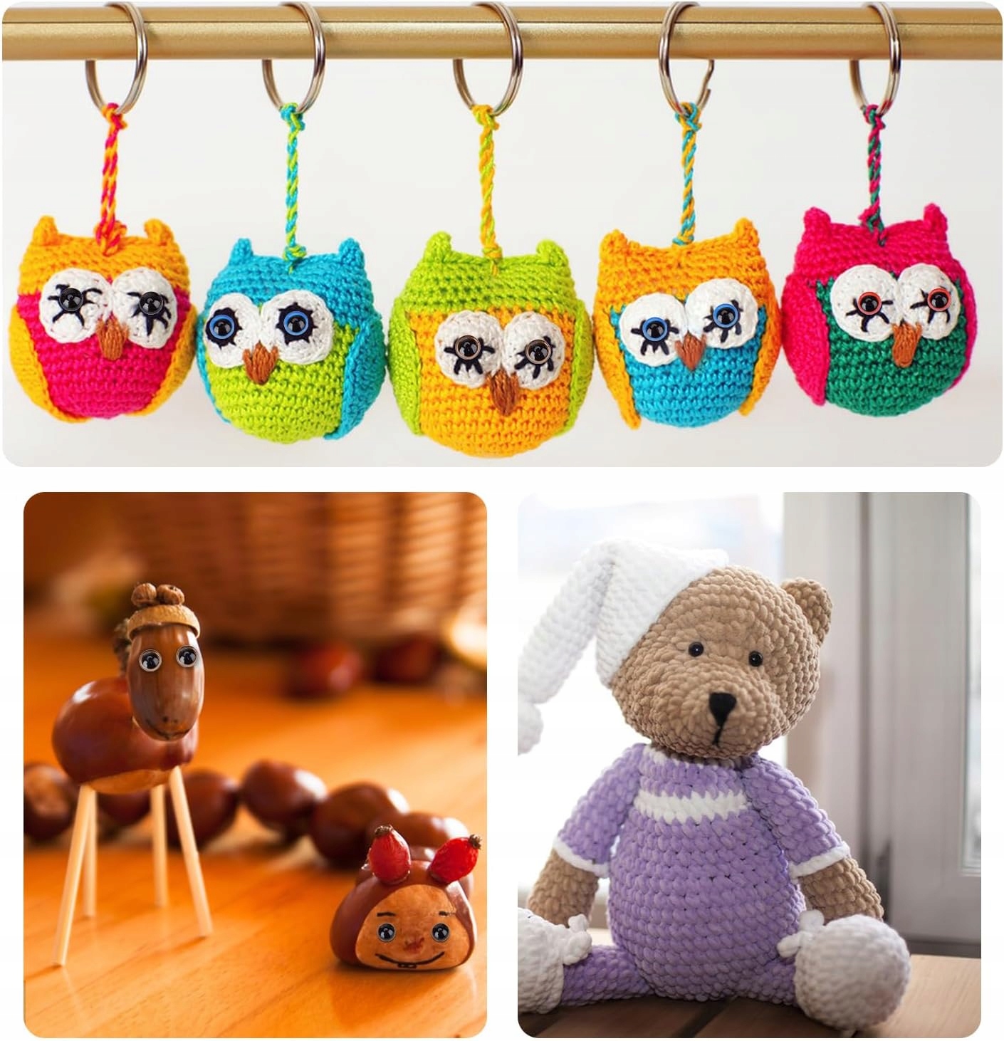 - Универсальность : глаза и носы в разных размерах от 5 мм до 12 мм, позволяют идеально соответствовать различным типам игрушек, кукол и вязаных проектов. После установки глаза стабильны и безопасны для самого молодого. Это не требует дополнительных инструментов или навыков - идеально подходит как для начинающих, так и для продвинутых любителей