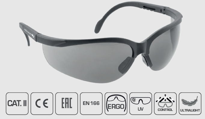 Очки предназначены для индивидуальной защиты глаз от механических повреждений. Соответствует стандарту EN 166:2001. Также соответствуют стандарту EN 170 – ультрафиолетовые фильтры и EN 172 – солнцезащитные средства для промышленного применения.