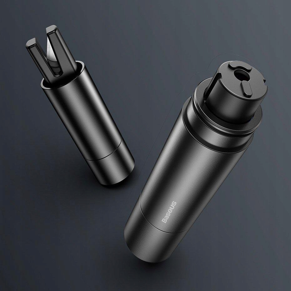 - Baseus Sharp Tool 2in1 позволяет перерезать ремень безопасности и разбить боковое стекло в автомобиле.