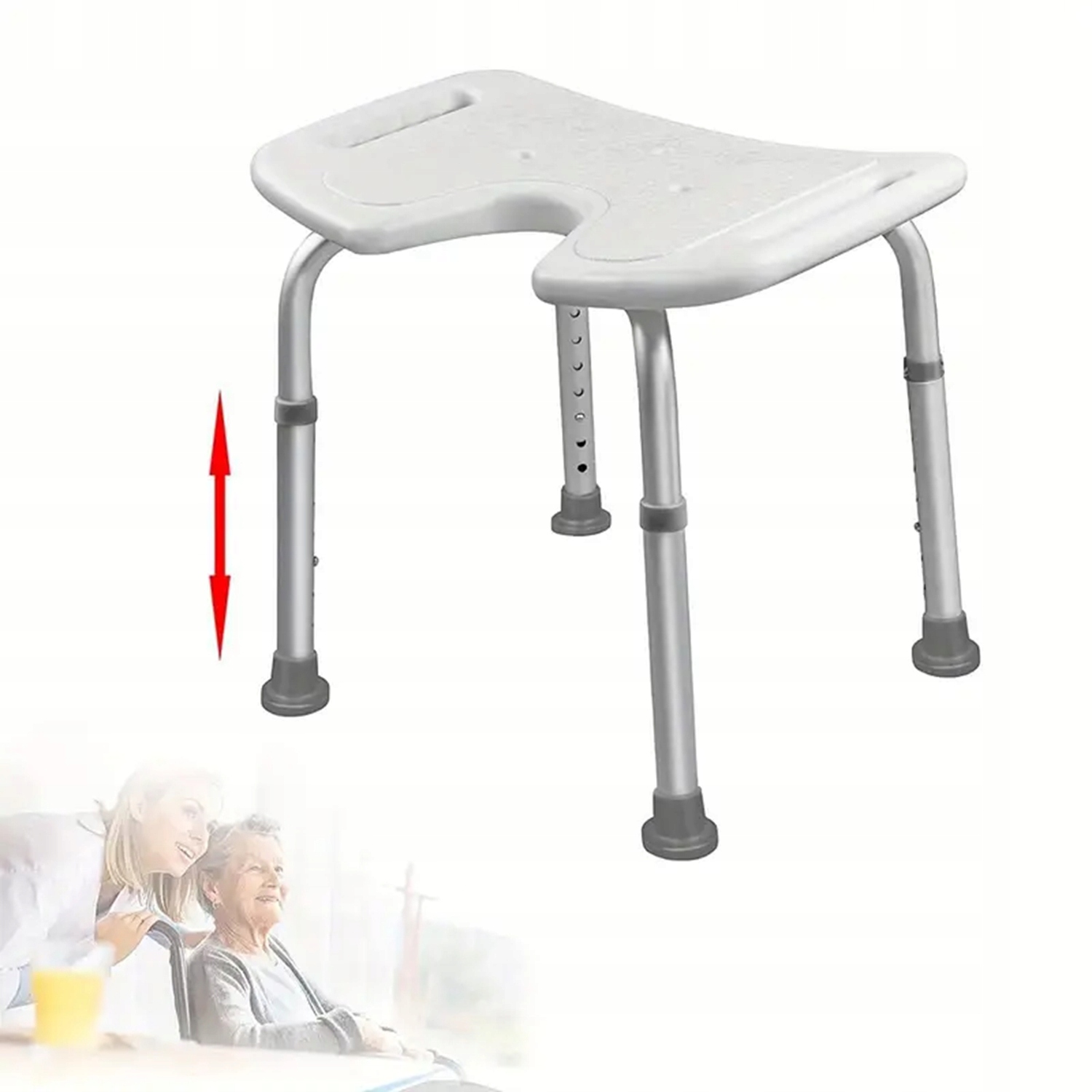 Регулируемый табурет для душа 37–51 см, белый алюминий, противоскользящий, для пожилых людей и людей с ограниченными возможностями