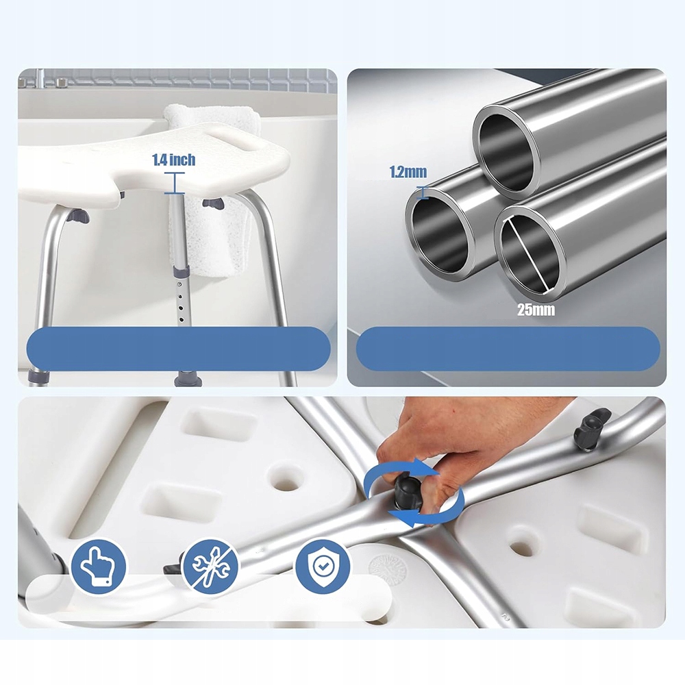 🏆 Прочный и легко чистится - Устойчивый к ржавчине алюминий + устойчивый к царапинам полиэтилен (ПЭ) выдерживают ежедневное использование. Его легко чистить — он идеально подходит для душа, ванны или в качестве переносного сиденья для унитаза.