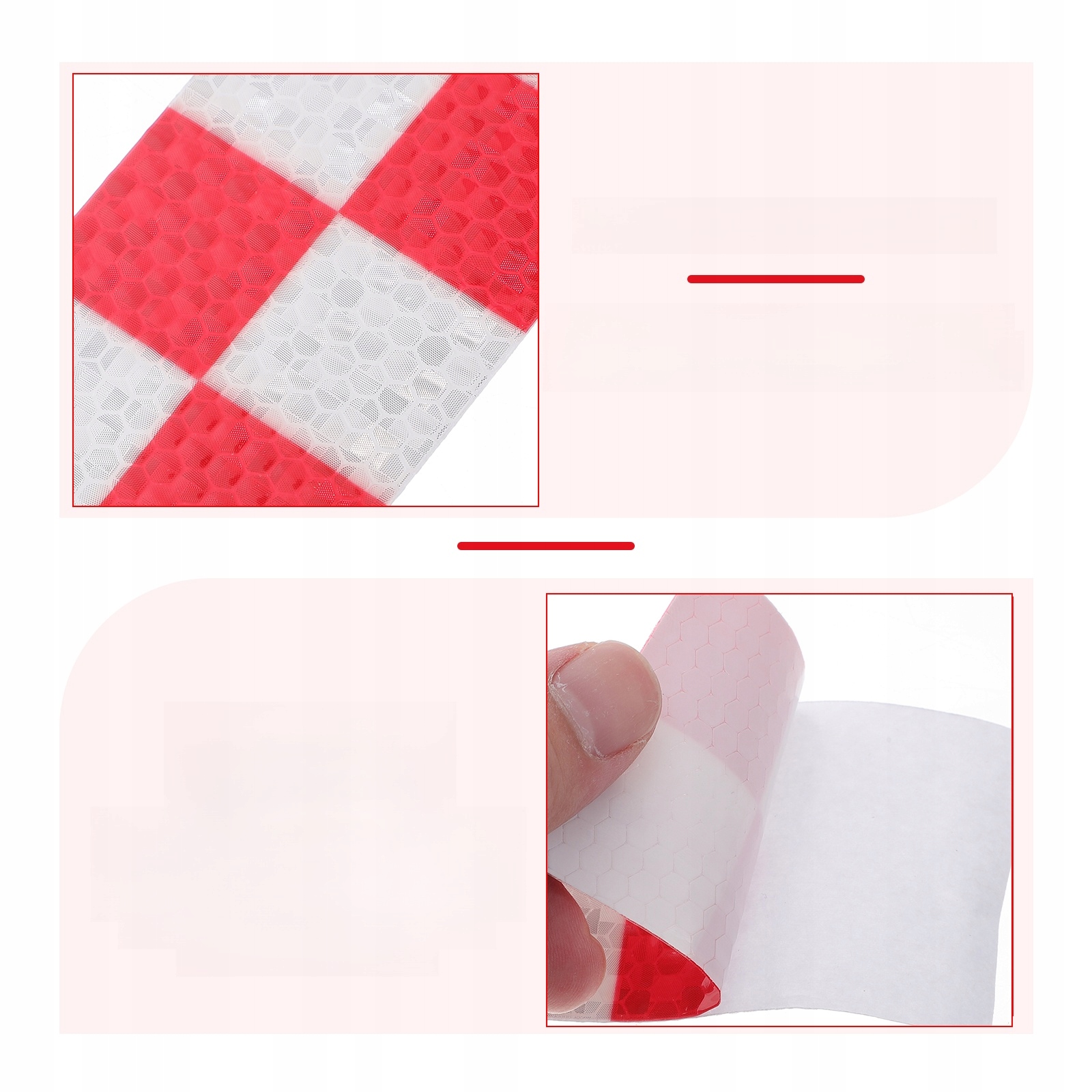 ✅Поверхность нашей светоотражающей ленты оснащена хорошо заметными шестиугольными сотовыми призмами, которые отражают свет в любой ситуации. С чередующимися красными и белыми узорами.