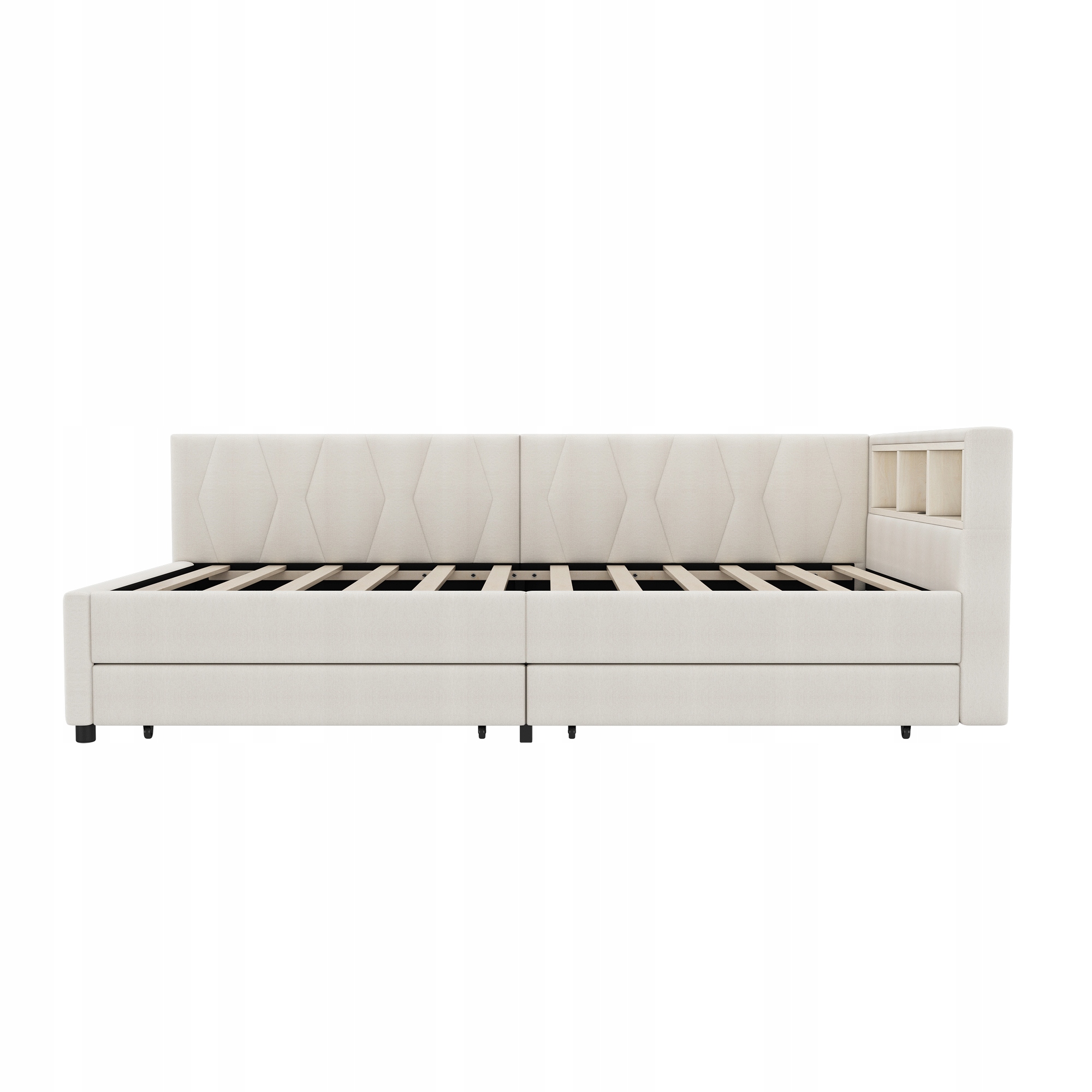 daytum, 90*200 см, дневная кровать, складной диван, хранение кроватей, USB+тип C, дистанционное управление для освещения светодиодной среды, кровать с двумя ящиками, кровать с рамой из буквы (без матраса), постельные принадлежности, бежевые