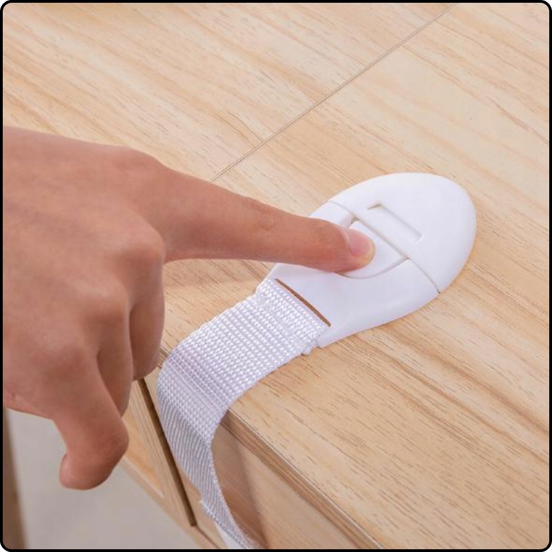 Наша защита для детских шкафчиков универсальна и подходит для различных типов мебели, ящиков и шкафов. Благодаря возможности регулировать длину ремешка замок идеально подойдет к вашей мебели. Просто откройте замок и отрежьте все ненужное, чтобы адаптировать его под свои нужды.