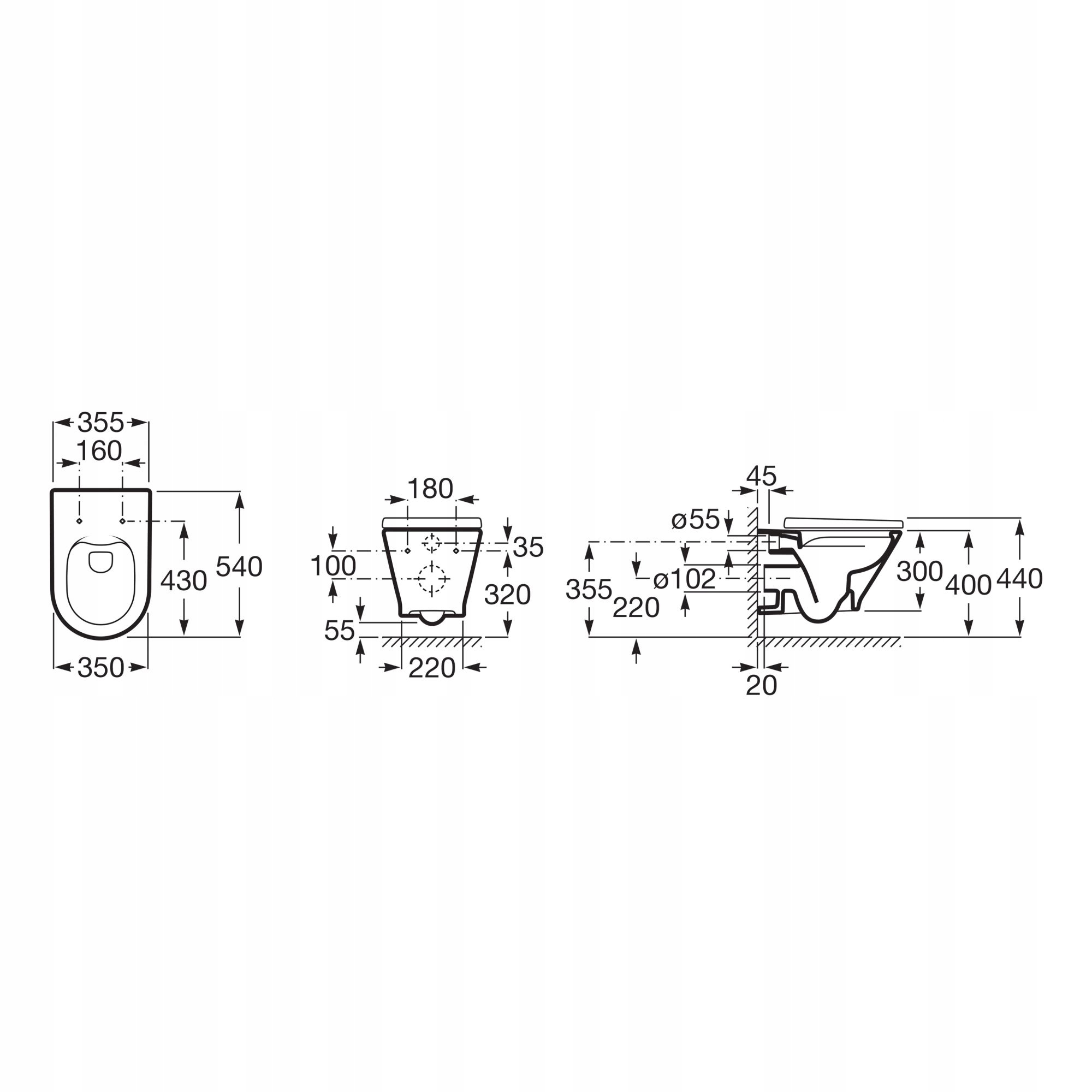 невесовый висящий туалет. Slim Duroplast Roca Gap Round.