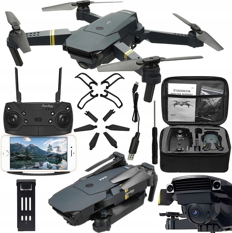 e58 - это современный дрон , который будет работать в руках обоих новичков, и Advanced "" Drones ". Изготовленный из твердого материала, он устойчив к падениям и любым ударам . Благодаря режиму без головы и системы стабилизации полета , контроль , прежде чем он станет невероятно простым , и прикрепленная камера позволит вам записывать фильмы и фотографировать в высоком качестве . отображается прямо на телефоне , так что вы можете насладиться прекрасным видом с высоты