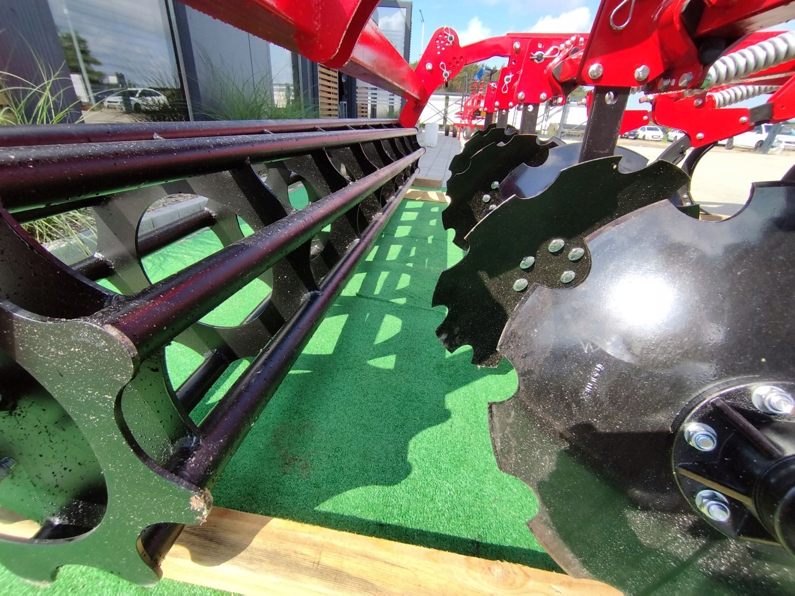 - Рабочая ширина: 2,5 м / 9 зубьев / количество дисков: 7 / 100–130 л.с. / 1350 кг (с трубчатым катком)