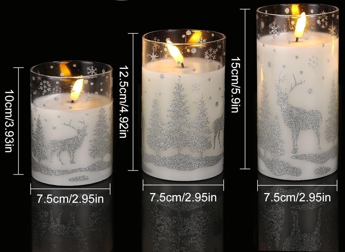 БЕСПЛАМЕННЫЕ СВЕЧИ С ФУНКЦИЕЙ ТАЙМЕРА 3 шт. С БЛЕСКНЫМ УЗОРОМ РОЖДЕСТВЕНСКИЙ УЗОР