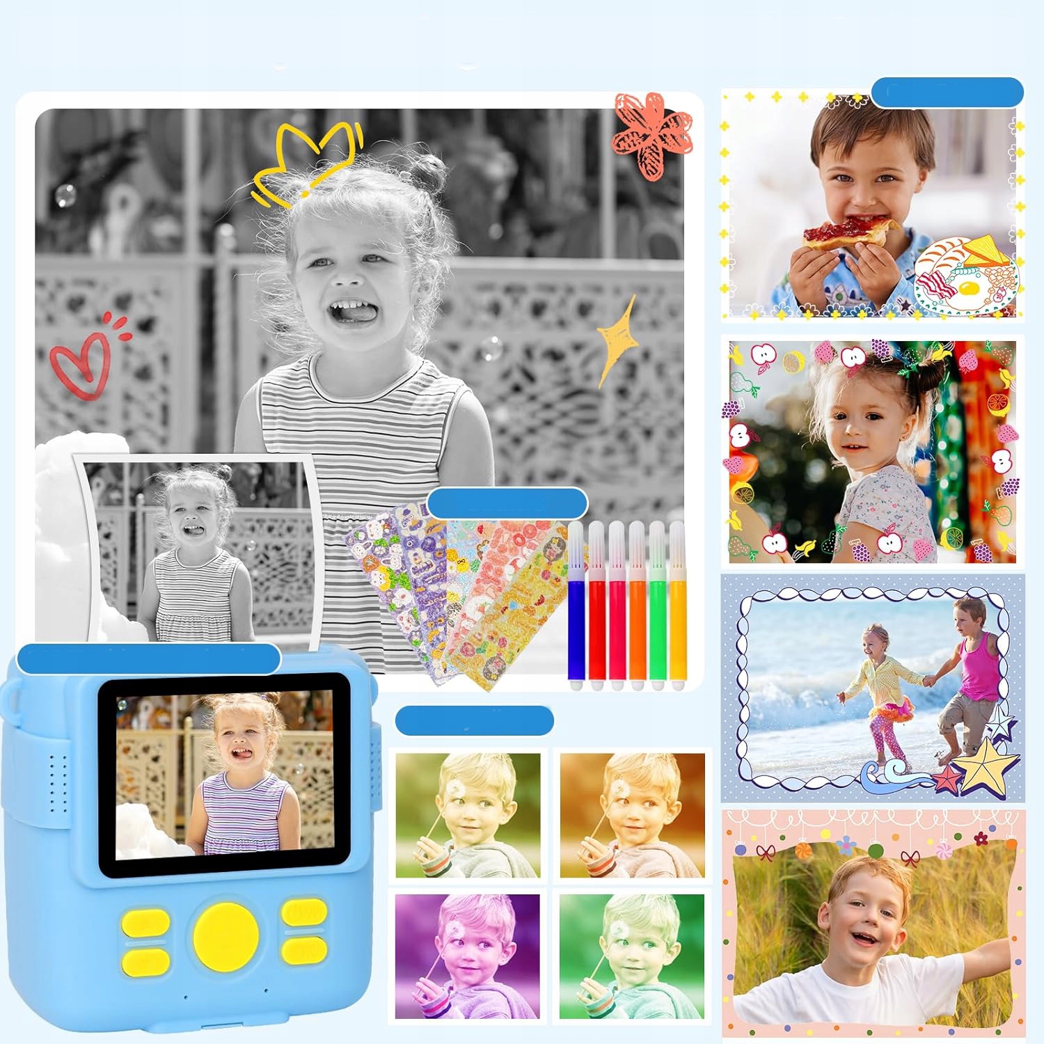 - 6 Красочные ручки позволяют детям полностью развивать свое воображение и креативность на печатных черно -белых фотографиях.