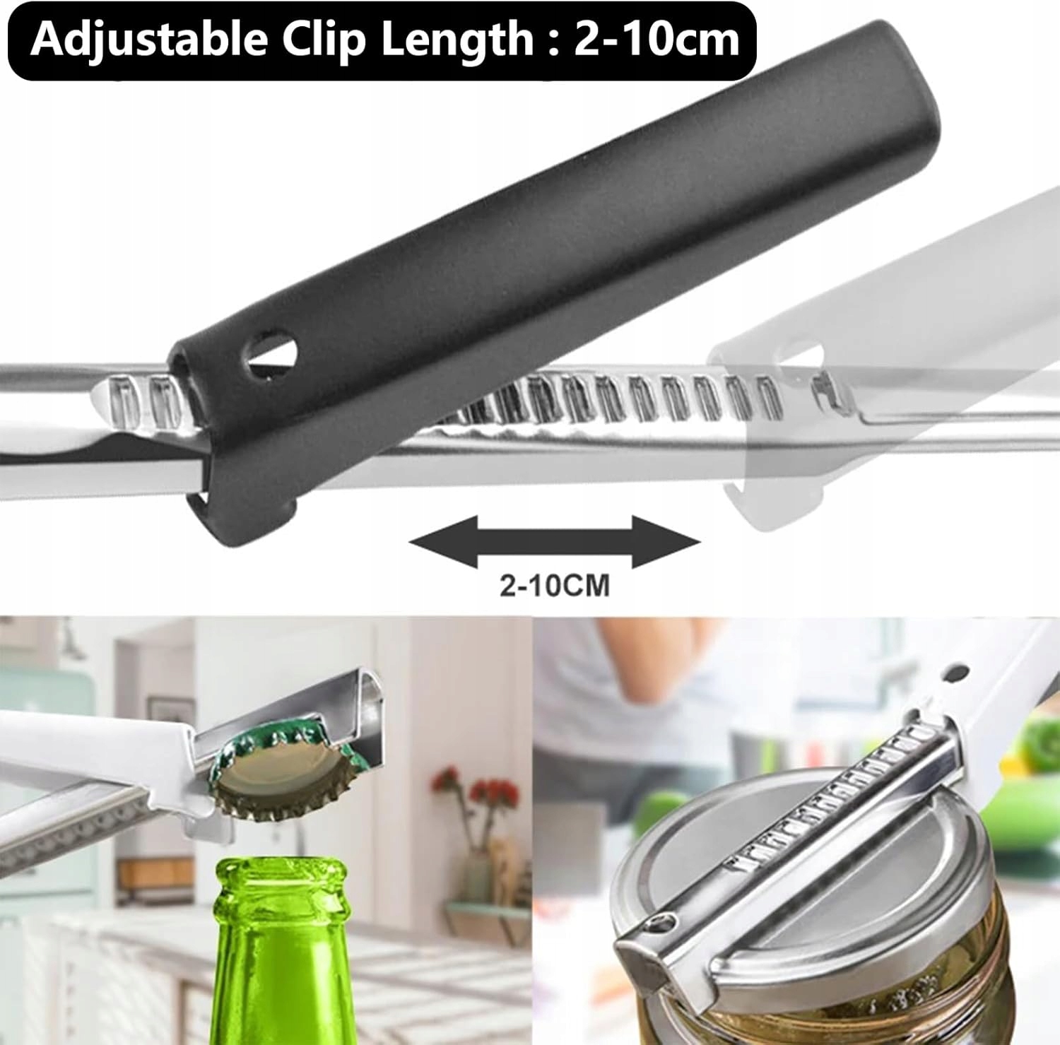 - ✅【Универсальное использование】Помимо открывания банок, этот инструмент также можно использовать в качестве открывалки для бутылок, что делает его универсальным кухонным аксессуаром. Он легко справляется с банками разных размеров и типами крышек.