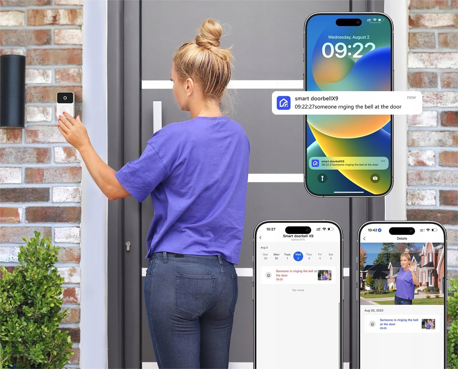 Отправляйте сообщение от дверного звонка на свой мобильный телефон в режиме реального времени, чтобы не пропустить гостей или подозрительных незнакомцев.