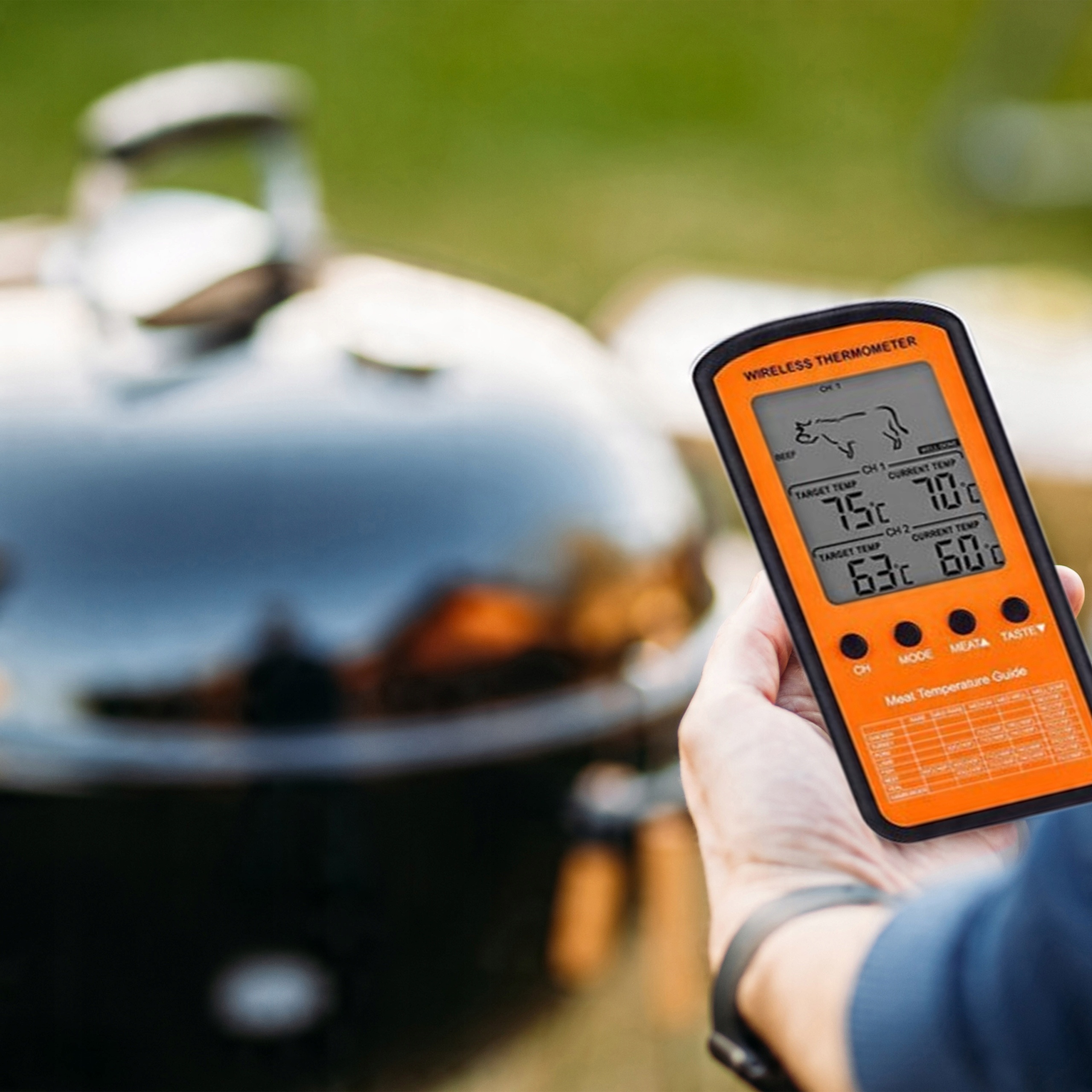 Термометр для гриля — это инструмент, позволяющий контролировать температуру во время приготовления на гриле. Это позволяет добиться идеальной температуры мяса и избежать ситуаций, когда мясо недоваривается или подгорает. Цифровой термометр — самый совершенный тип термометра. Датчик подключен к цифровому устройству, которое отображает внутреннюю температуру мяса на экране.