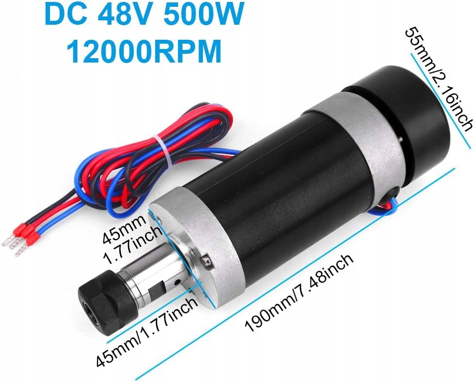 бесщеточный шпиндельный двигатель CNC 500 Вт, йофули ER16 безмолвного шпинделя, воздушный, бесщеточный контроллер двигателя постоянного тока, 48 В постоянного тока, 55 -мм зажим, набор рукава