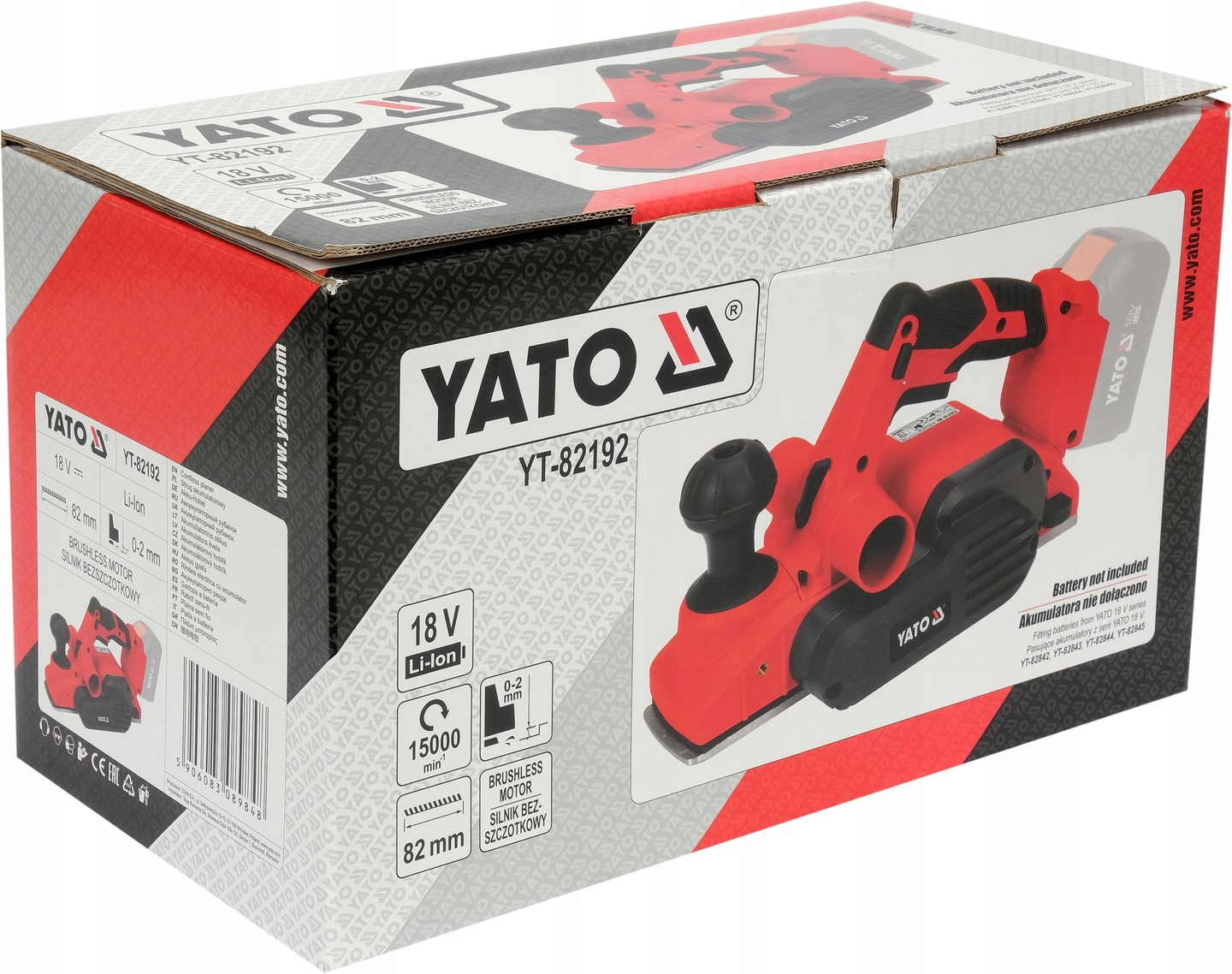 БЕЗЩІТКОВИЙ АКУМУЛЯТОРНИЙ РУБАНОК YATO 18V 82 мм