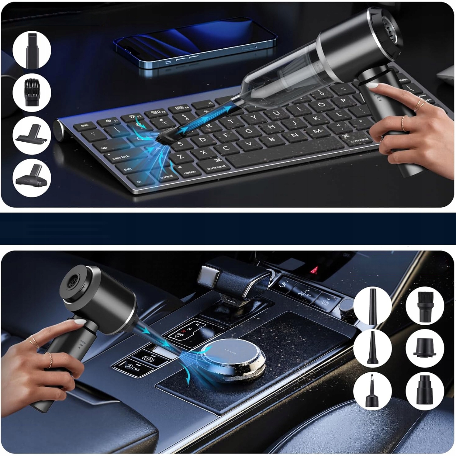👉 Универсальный вакуумный очиститель: в наборе с полными аксессуарами для очистки небольших щелей и зазоров, вздувая пыль с клавиатуры.