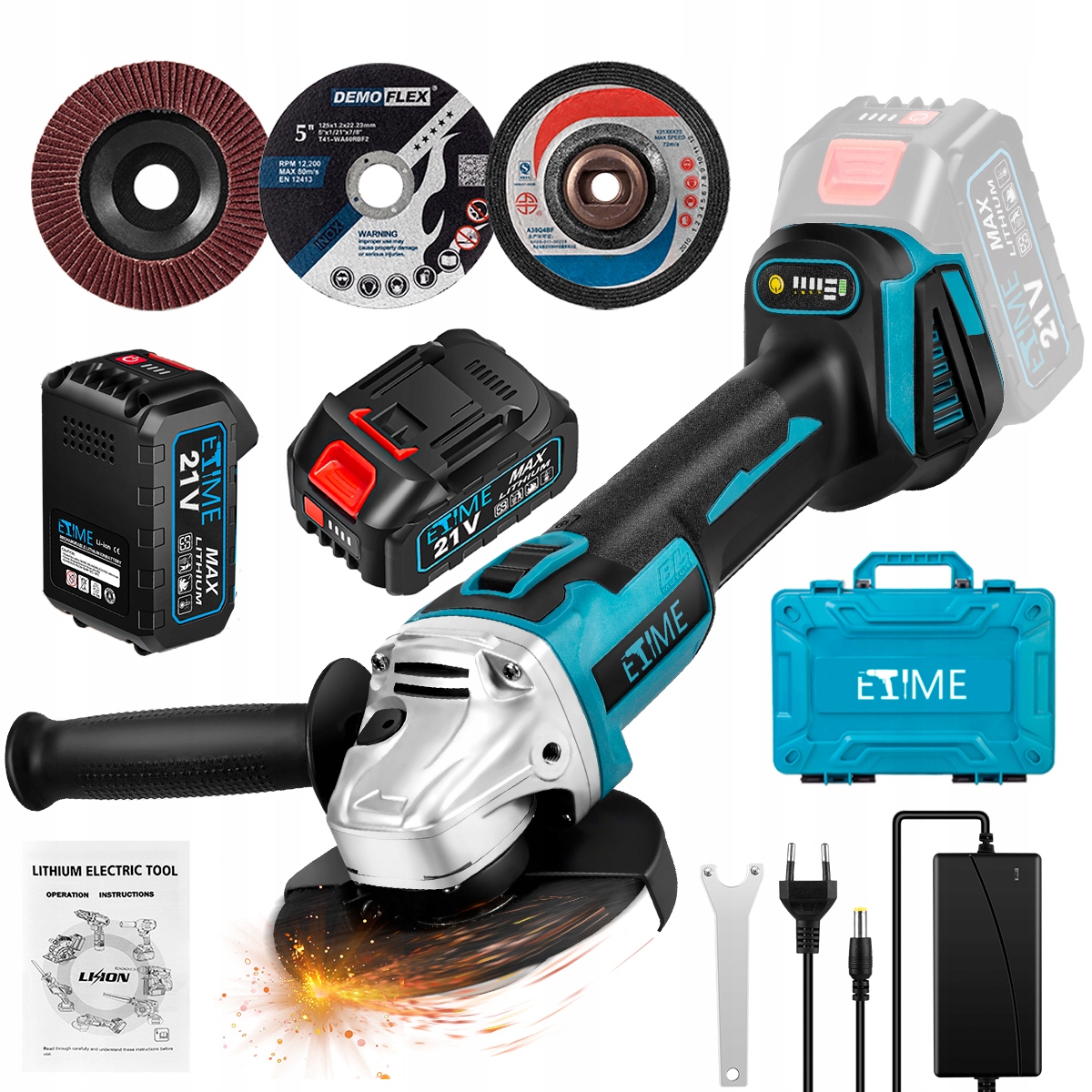 БЕСЩЕТОЧНАЯ УГЛОВАЯ ШЛИФ-Шлифмашина ДЛЯ AKU с ETiME AKU+3*Диск+Чемодан