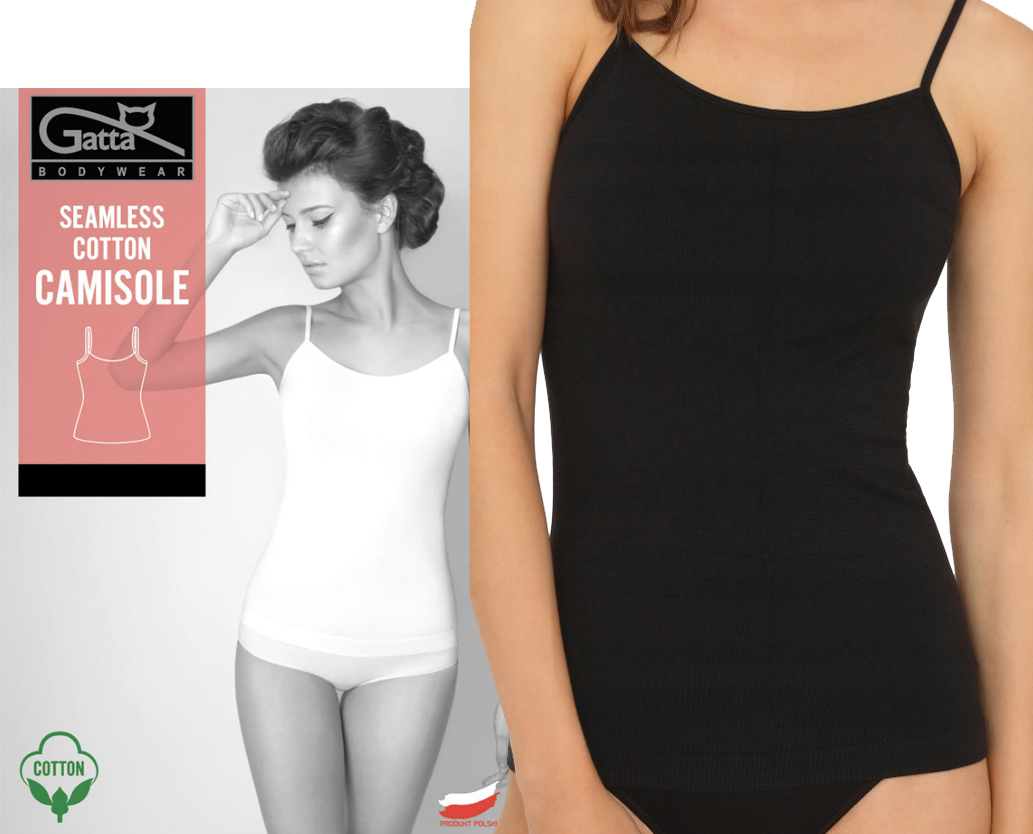 БЕСШОВНАЯ ФУТБОЛКА GATTA на бретельках, ЧЕРНЫЙ ХЛОПОК XXL