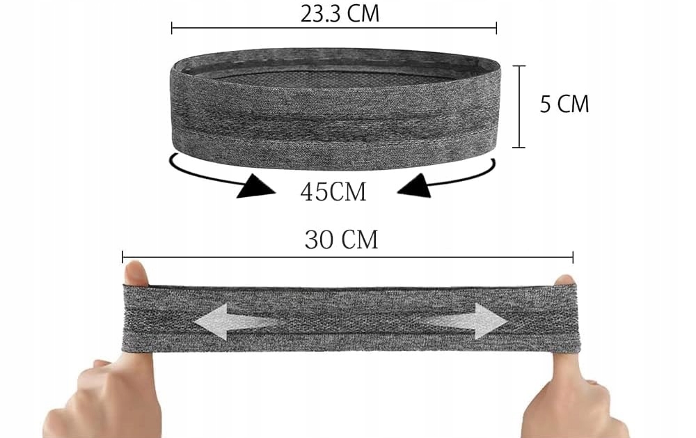 Бесплатная эластичная повязка на голову Спортивные волосы 45 см серо -серые