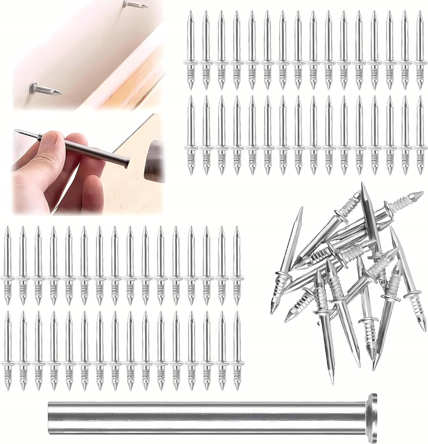 🔨100 шт Гвозди бесшовные для двугранных плинтусов, без забивания настенных гвоздей (длина приспособления 6см) - серебро🌟