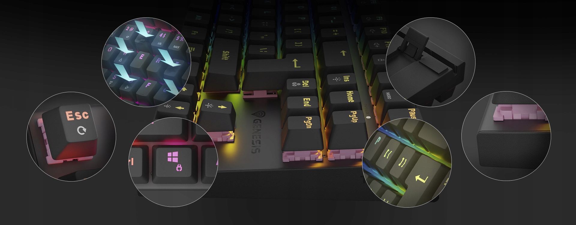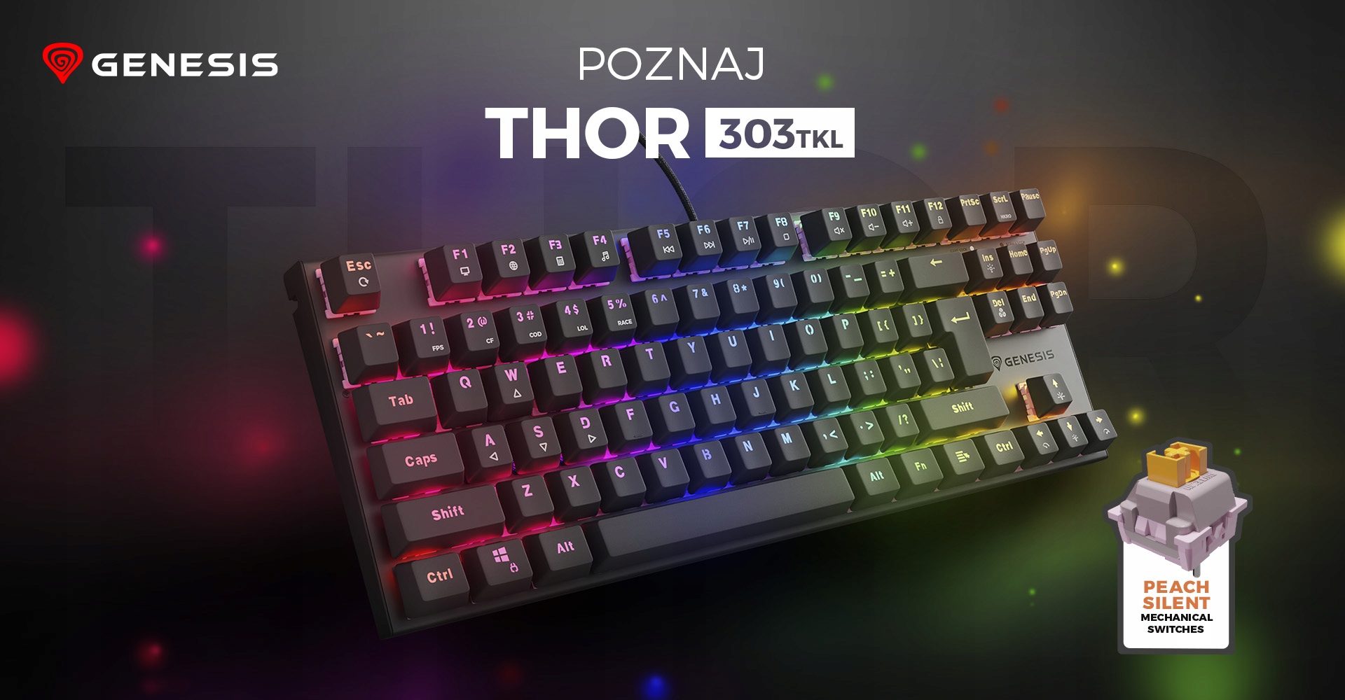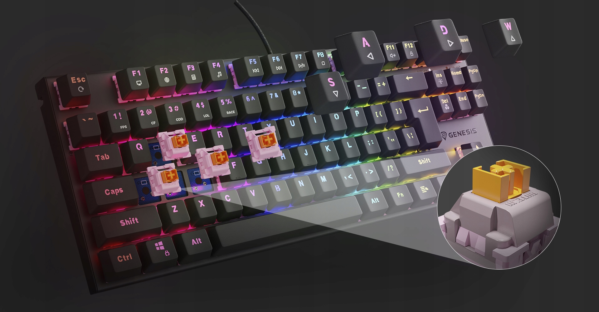 ИГРОВАЯ КЛАВИАТУРА GENESIS THOR 303 TKL US, МЕХАНИЧЕСКИЙ КРАСНЫЙ ПЕРЕКЛЮЧАТЕЛЬ с RGB ПОДСВЕТКОЙ