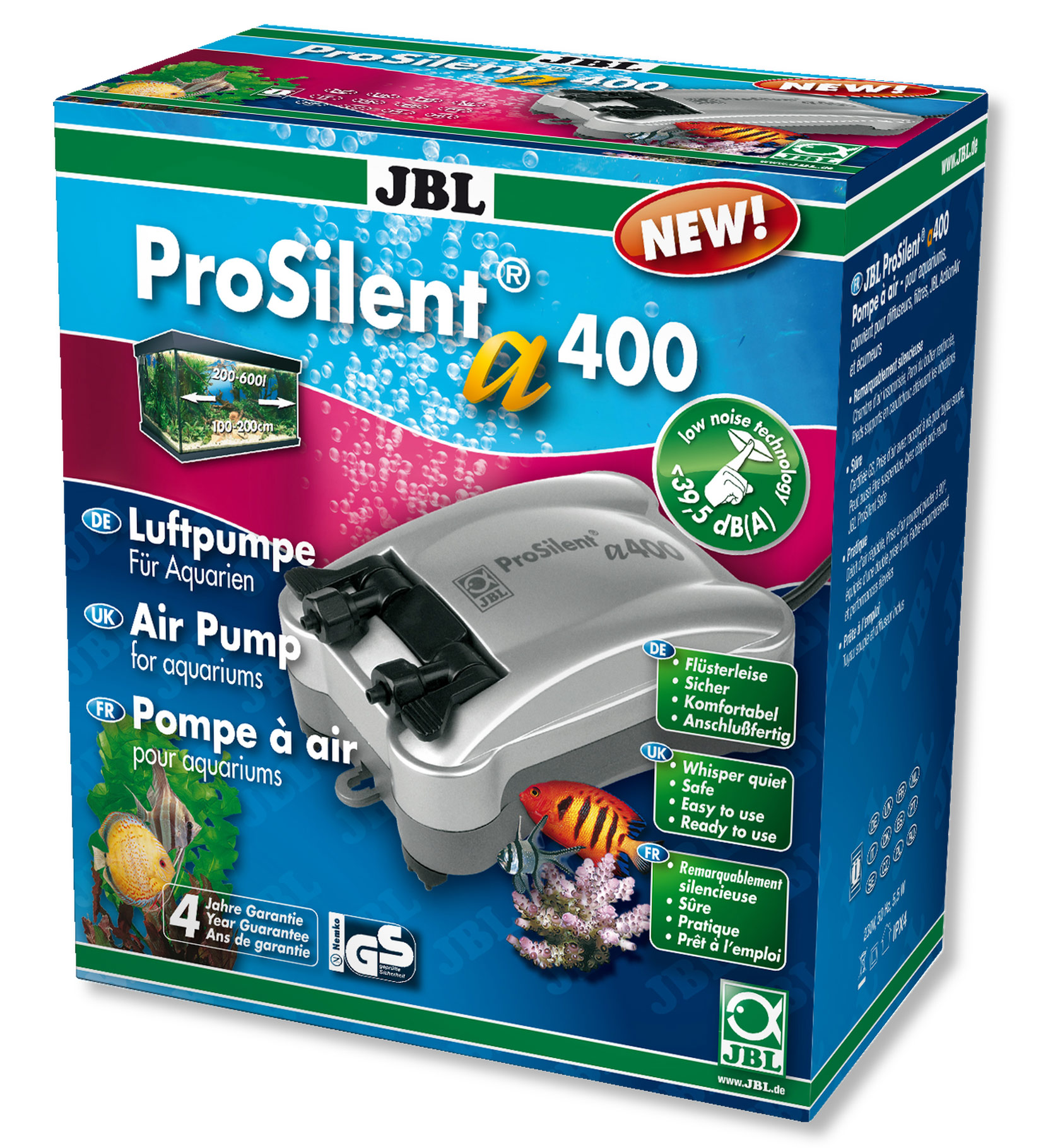 JBL Воздушный насос ProSilent сертифицирован TÜV. Обладая производительностью воздушного потока 400 л/ч и потребляемой мощностью всего 5,5 Вт, он отличается высокой эффективностью и безопасностью благодаря подсоединению воздуха с помощью шлангового соединителя. Воздушная камера со звукоизоляцией, усиленная стенка корпуса и вибропоглощающие силиконовые ножки обеспечивают бесшумную работу. Устройство имеет обратный клапан.