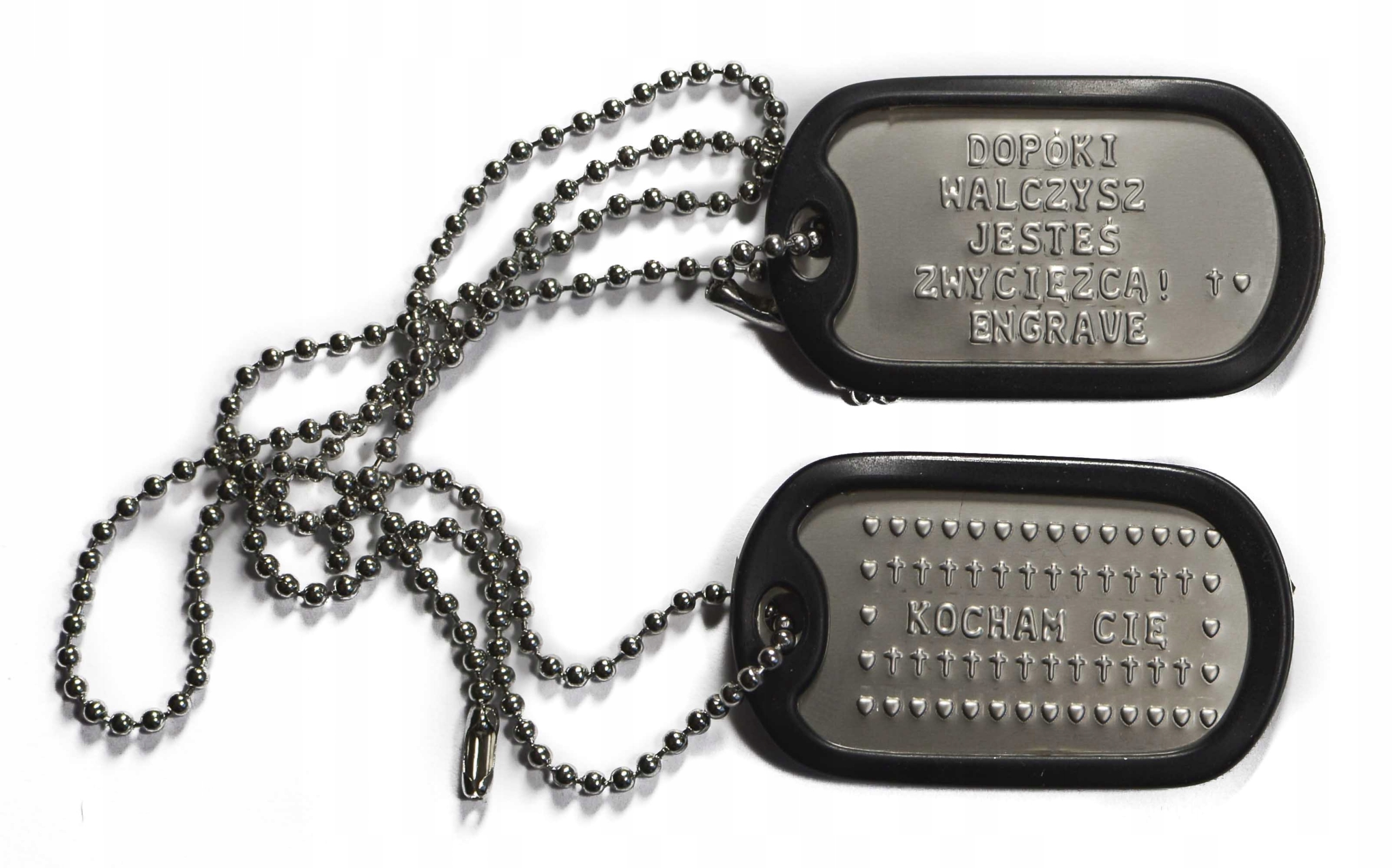 - Цепочки шариков - они также сделаны из хирургической нержавеющей стали. Они не являются хромированными или никелевыми сталью, они не теряют цвет, вы можете плавать в них без каких -либо проблем. Копии теряют блеск, ржавчину или расстались даже с тривиальным тягой. Наши шариковые цепи сделаны из той же стали, что и бляшки. Они выдерживают нагрузку до 30 килограммов! Они в безопасности, они не вызывают раздражения кожи - это также оригинальный продукт США.