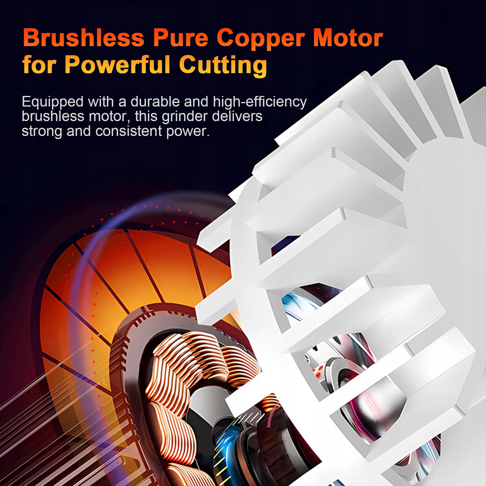1. Мощный и эффективный бесщеточный двигатель. Угловая шлифовальная машина оснащена высокоэффективным бесщеточным двигателем, работающим на максимальной скорости 12 000 об/мин. Этот двигатель обеспечивает постоянную мощность для плавной и эффективной резки, шлифования и полировки. Бесщеточная конструкция также увеличивает срок службы инструмента и снижает потребление энергии.