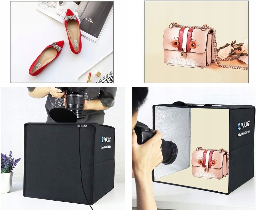 Всего 4 шага, без сложного процесса установки. Шаг 5 – фотографируем. Студия крепится с помощью прочной и быстрой липучки. Палатка-студия способна не только обеспечить равномерное освещение, но и устранить тени и отражения. Что еще более важно, нет стробоскопического эффекта. Не напрягает глаза при длительной работе. Без тяжелой металлической опорной рамы его намного легче и легче переносить.