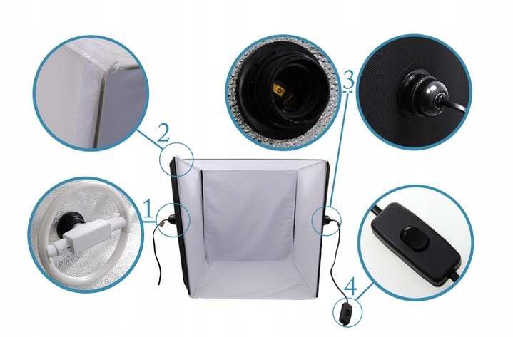 Кроме того, палатка без теней имеет две внешние стены с серебряной отражающей поверхностью, которая сохраняет свет в палатке и крепится на липучке, дополнительно имеет отверстие для одинарной рамы. Размещаем каркасы внутри палатки, с двух противоположных сторон. Каждый патрон имеет отдельный выключатель на кабеле длиной 170 см.