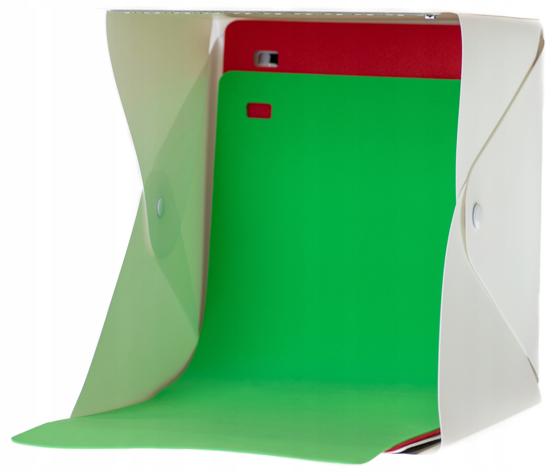 Высокая функциональность обеспечивается продуманной конструкцией, позволяющей подготовить стенд буквально за несколько минут. Чтобы собрать палатку, все, что вам нужно сделать, это закрепить две металлические защелки, соединяющие боковые стенки, повесить один из 4 включенных в комплект фонов выбранного цвета и подключить блок питания 5 В через разъем microUSB с помощью прилагаемого кабеля.