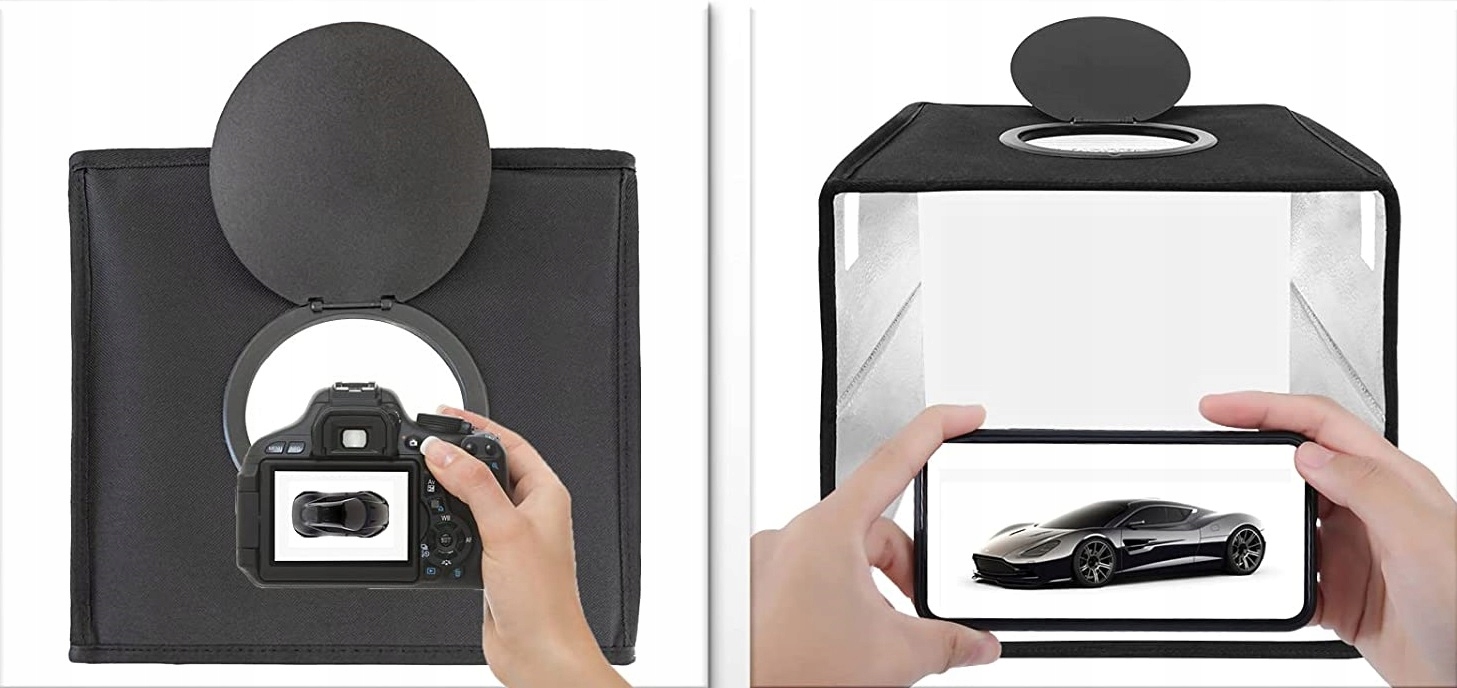 Бестеневая палатка Puluz PU5041B идеально подходит для фотосъемки продуктов и многого другого. С его помощью вы сможете правильно отображать выбранные предметы, такие как украшения, игрушки, гаджеты или аксессуары. Продукт также обеспечивает превосходное качество светодиодного освещения. Он предлагает на выбор 3 режима освещения и 10 уровней яркости. Он оснащен USB-кабелем, который позволяет питать его. В комплект также входят сменные двусторонние фоны (6 штук) в 12 цветах.
