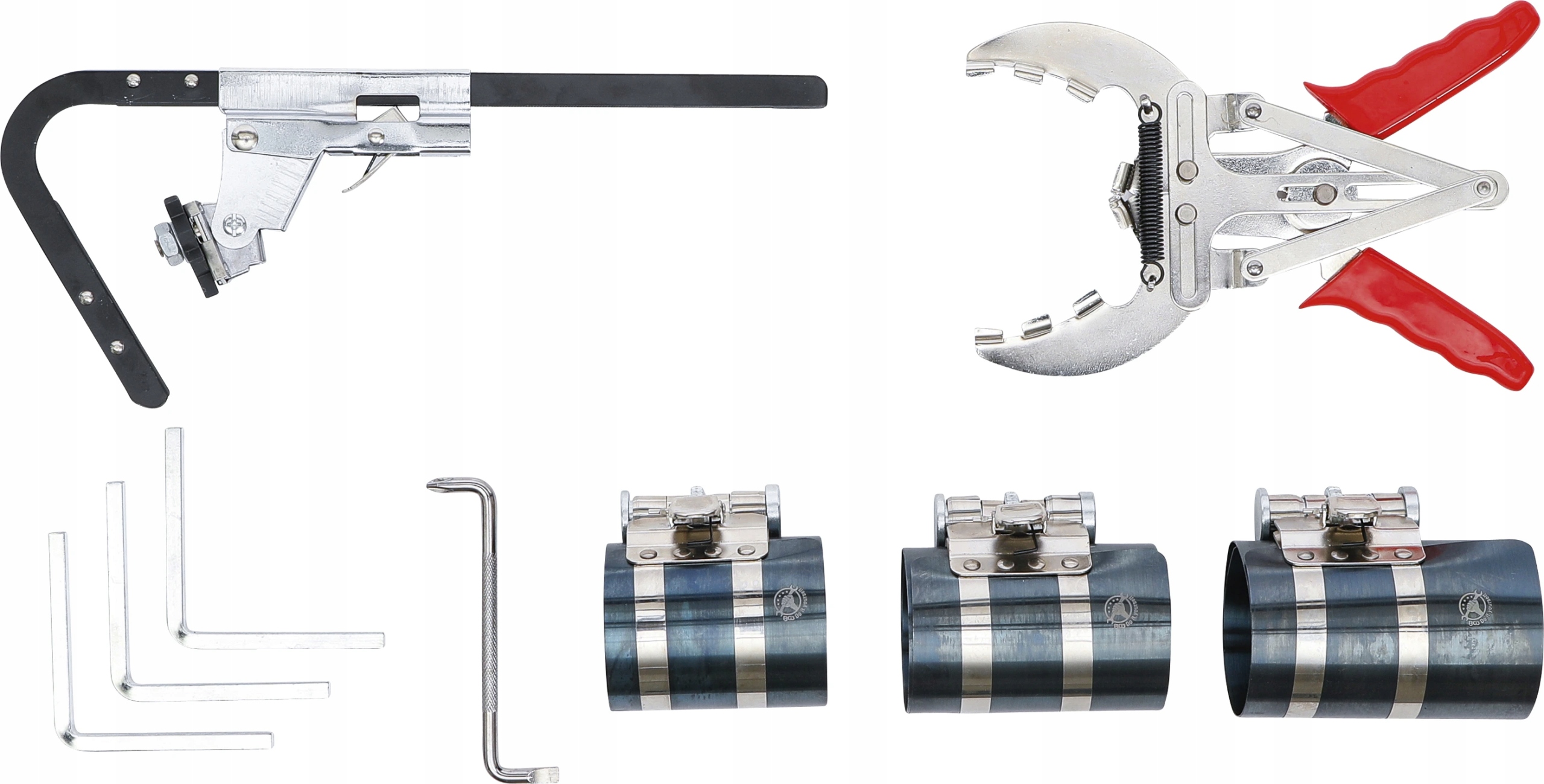 - Он содержит важные инструменты для очистки поршневых колец, монтажных поршневых колец, предварительно протяжении поршневых колец во время установки поршня.