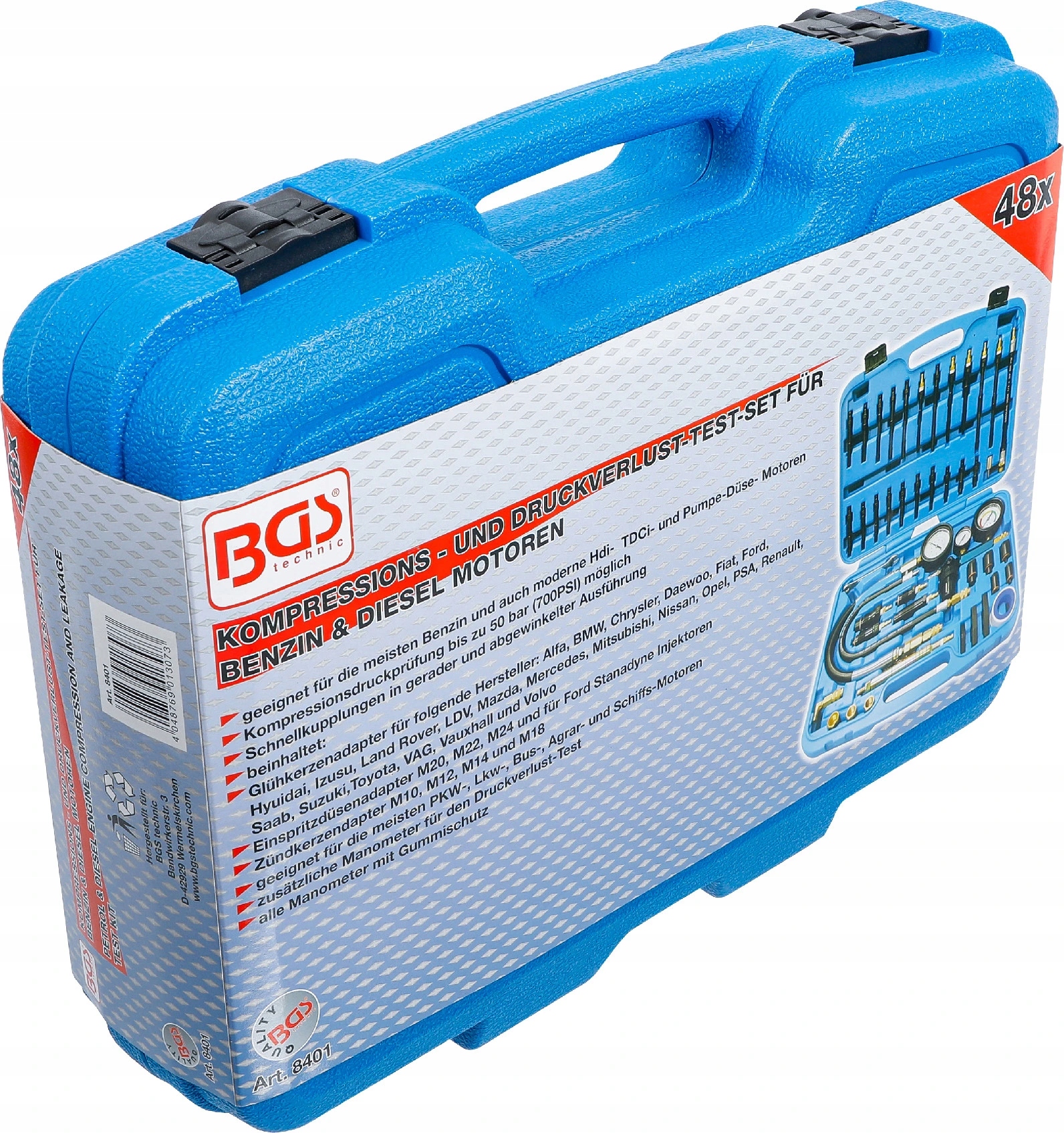 BGS 8401, Комплект для проверки компрессии и утечки давления для бензина и бензина.