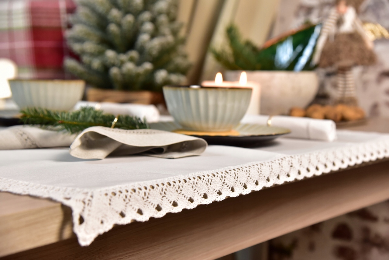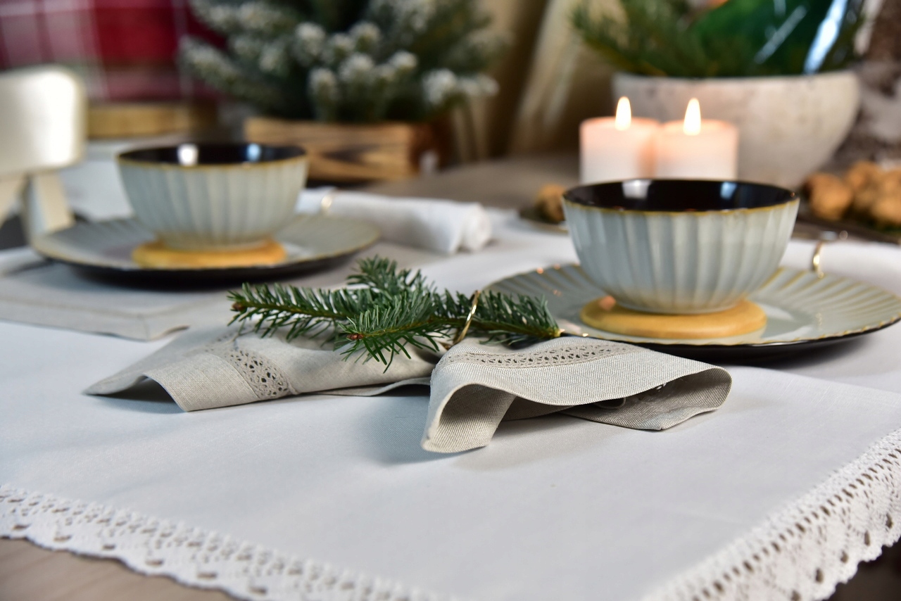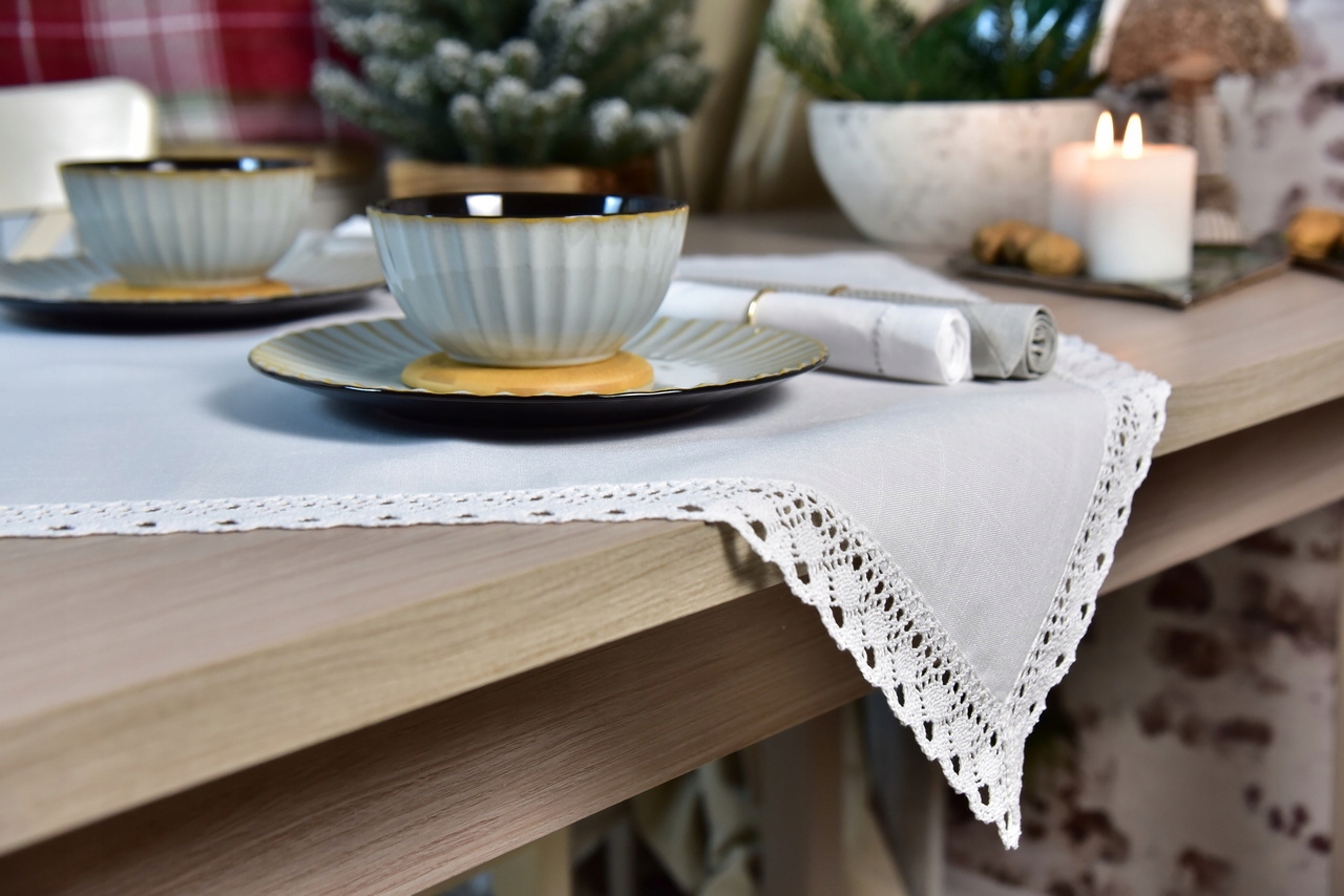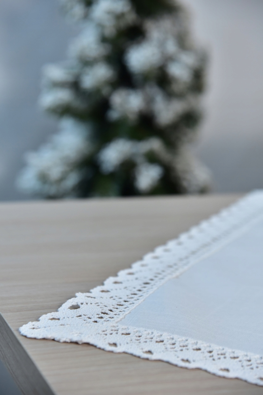 Biała gładka serweta na święta 85x85cm koronkowe wykończenie PREZENT