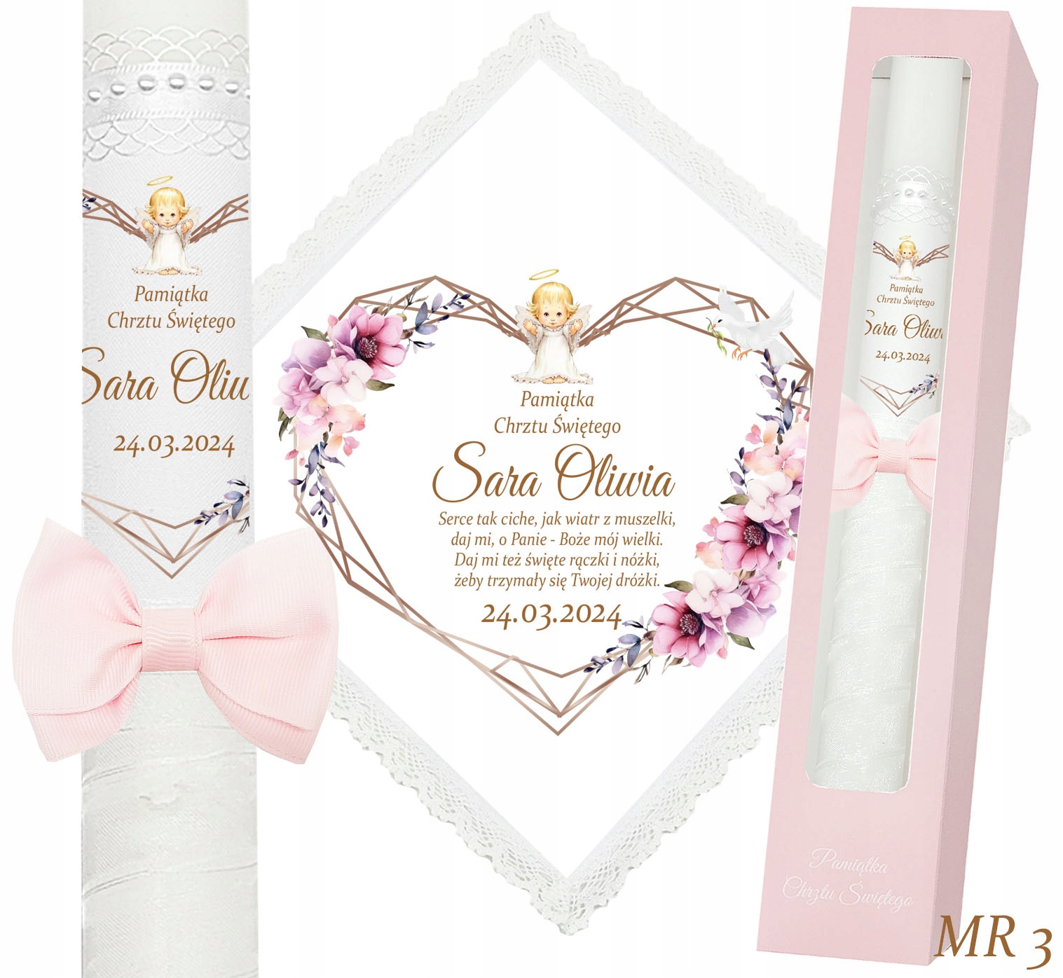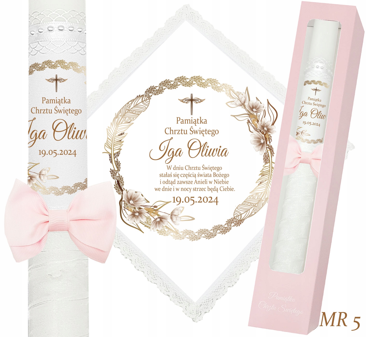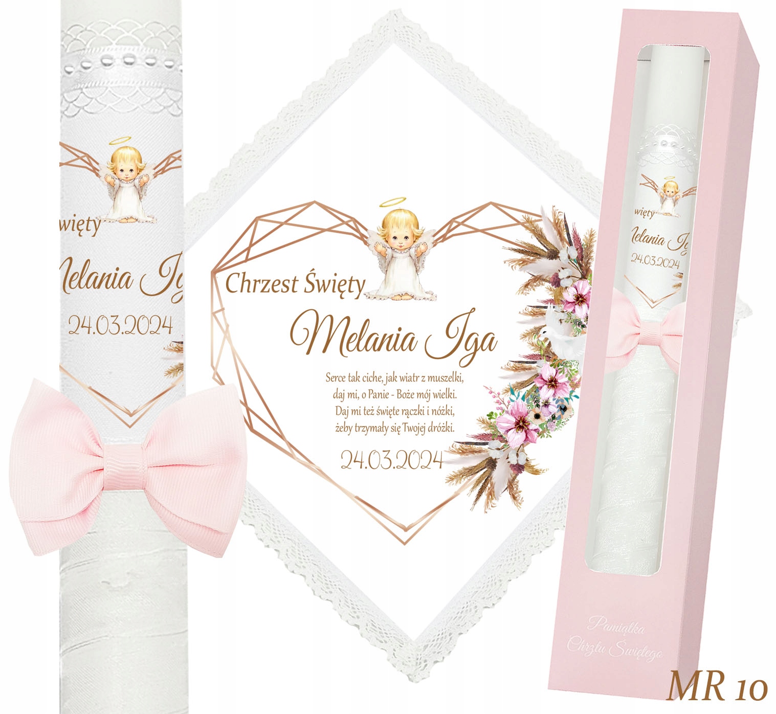 BIAŁA SZATKA I ŚWIECA DO CHRZTU ZESTAW PUDEŁKO SZATKA+ŚWIECA