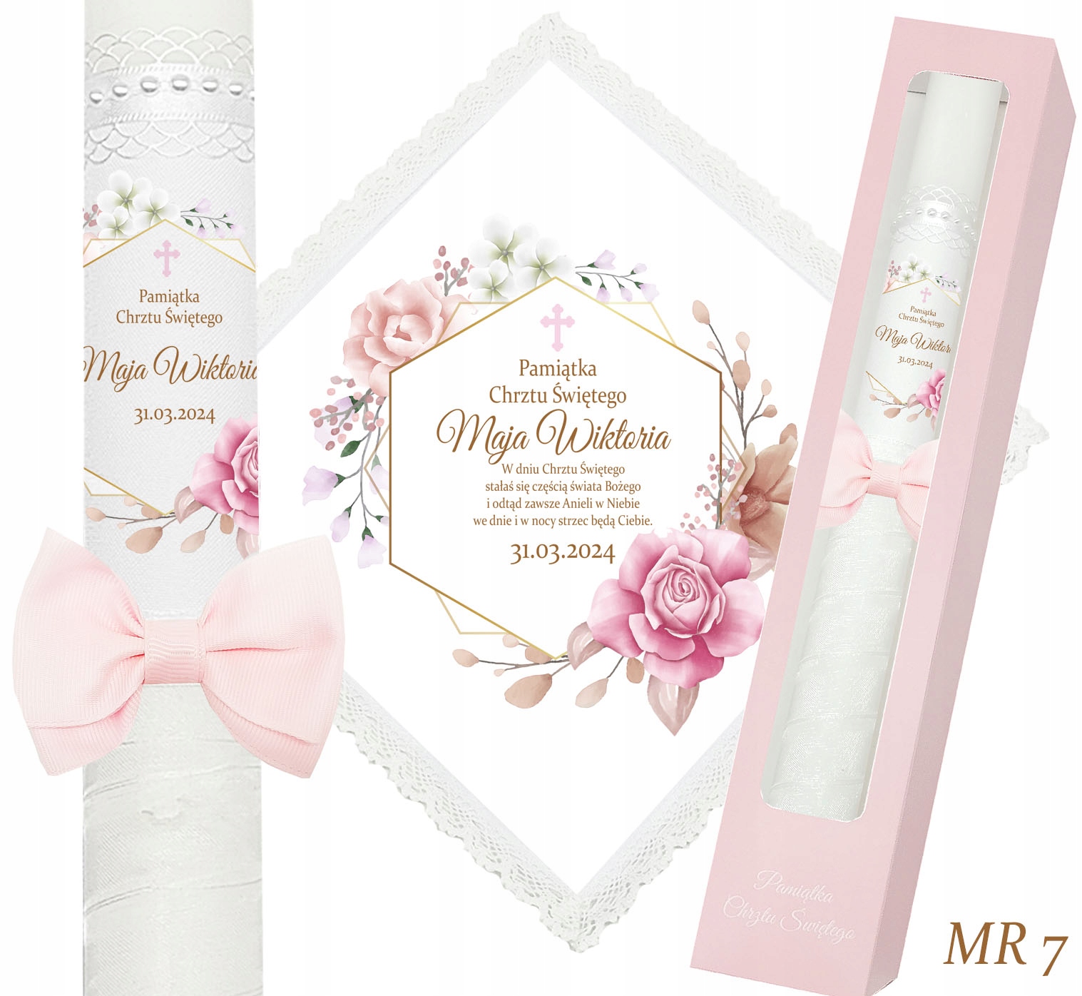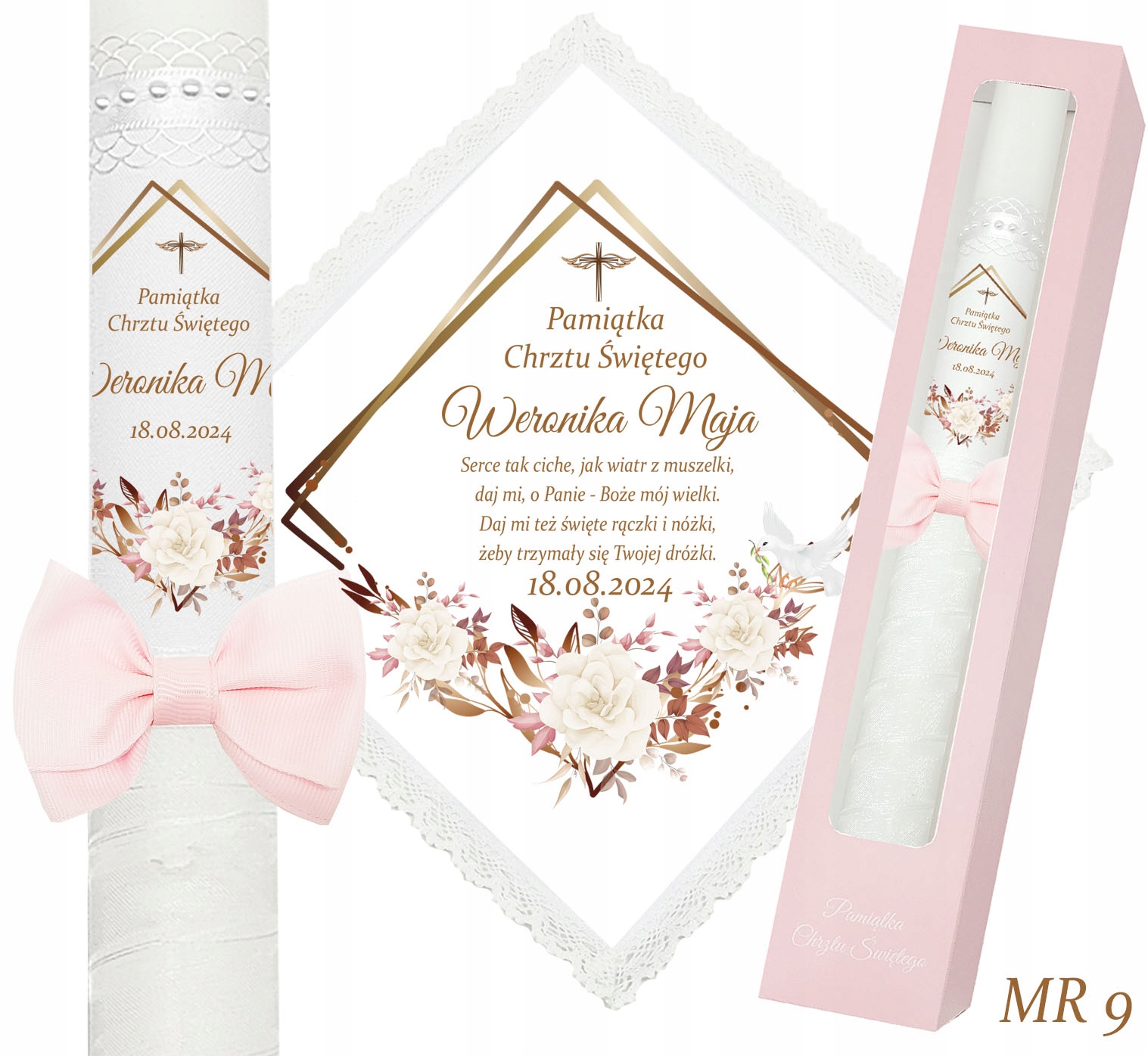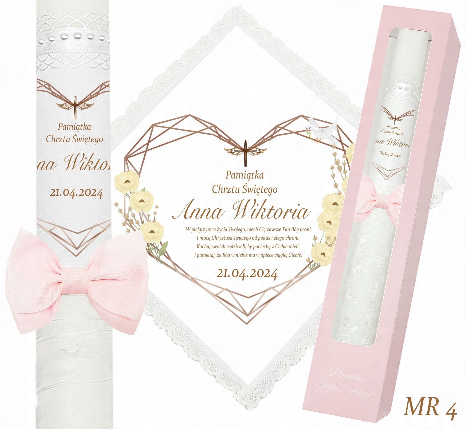 BIAŁA SZATKA I ŚWIECA DO CHRZTU ZESTAW PUDEŁKO SZATKA+ŚWIECA