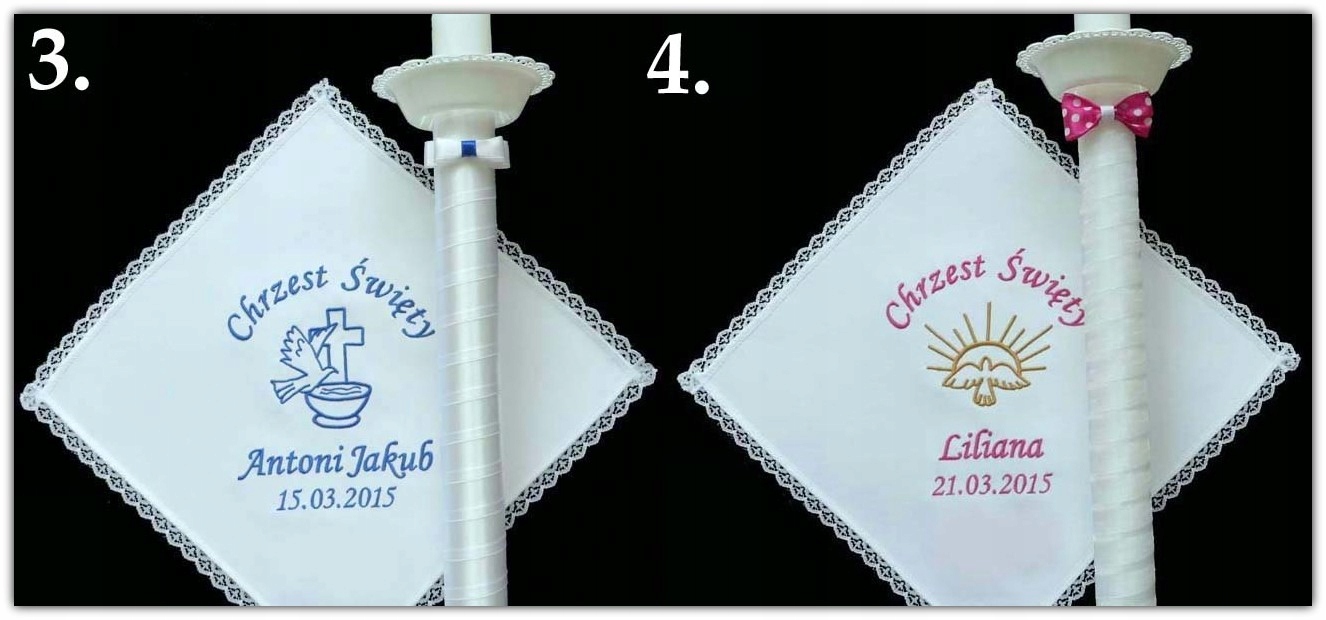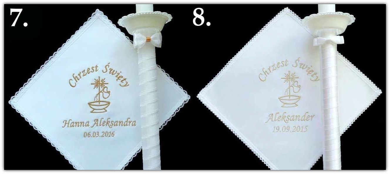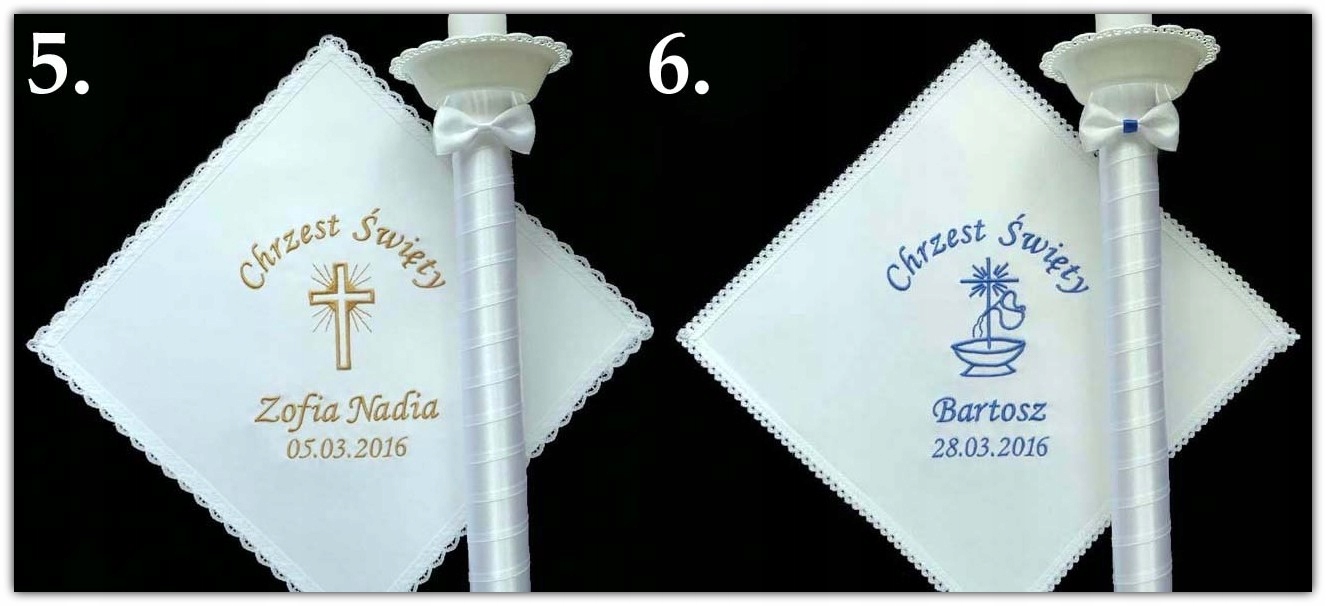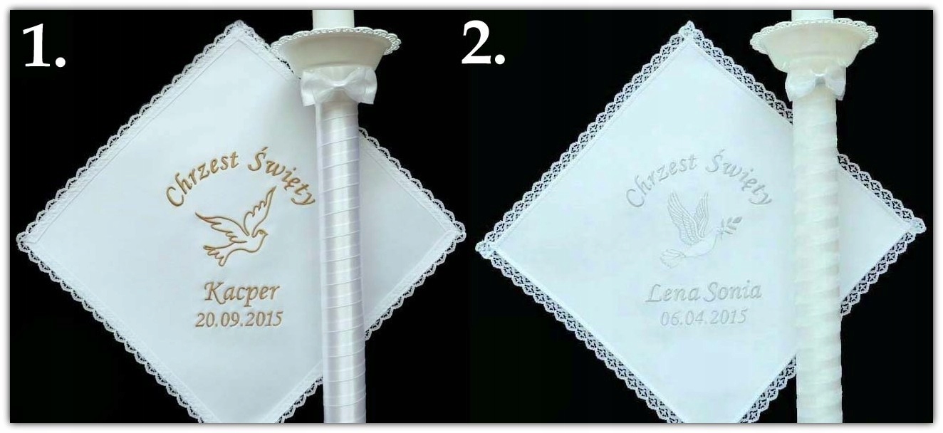 Biała SZATKA I ŚWIECA z HAFT chrztu CHRZEST- WZORY