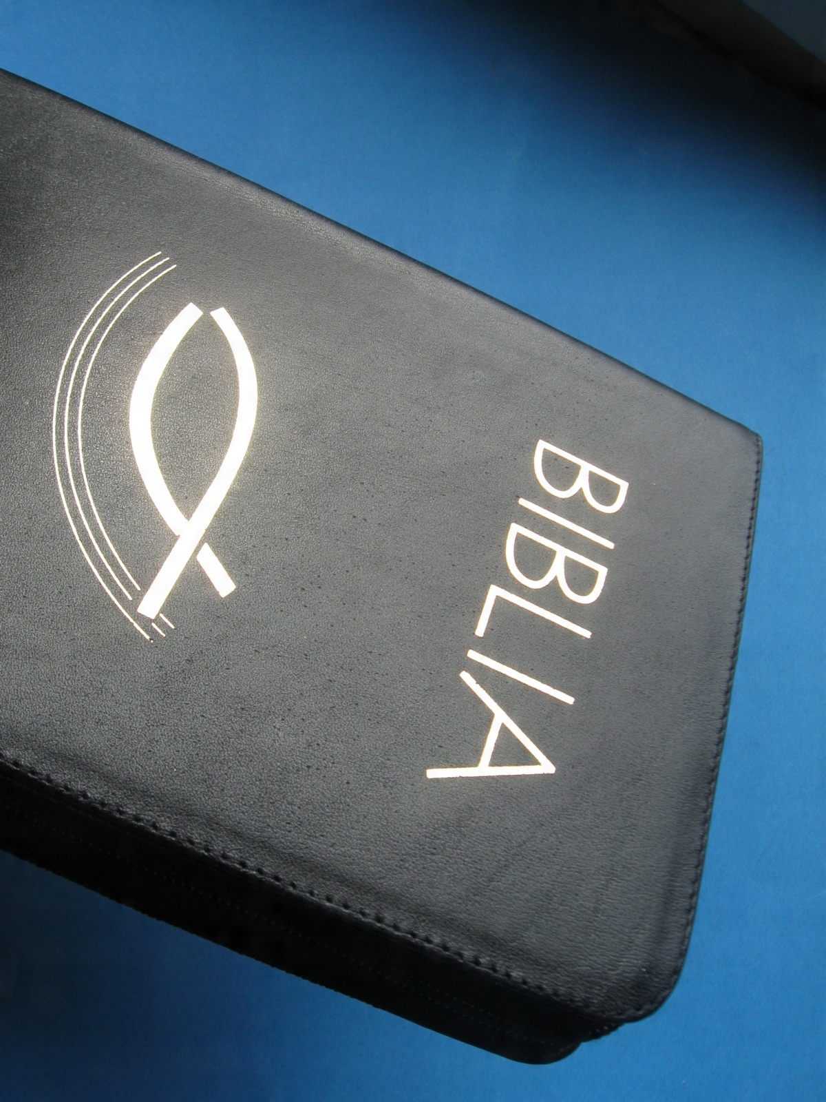 Biblia Stary i Nowy Testament - Oprawa czarna skóra na suwak z rybką