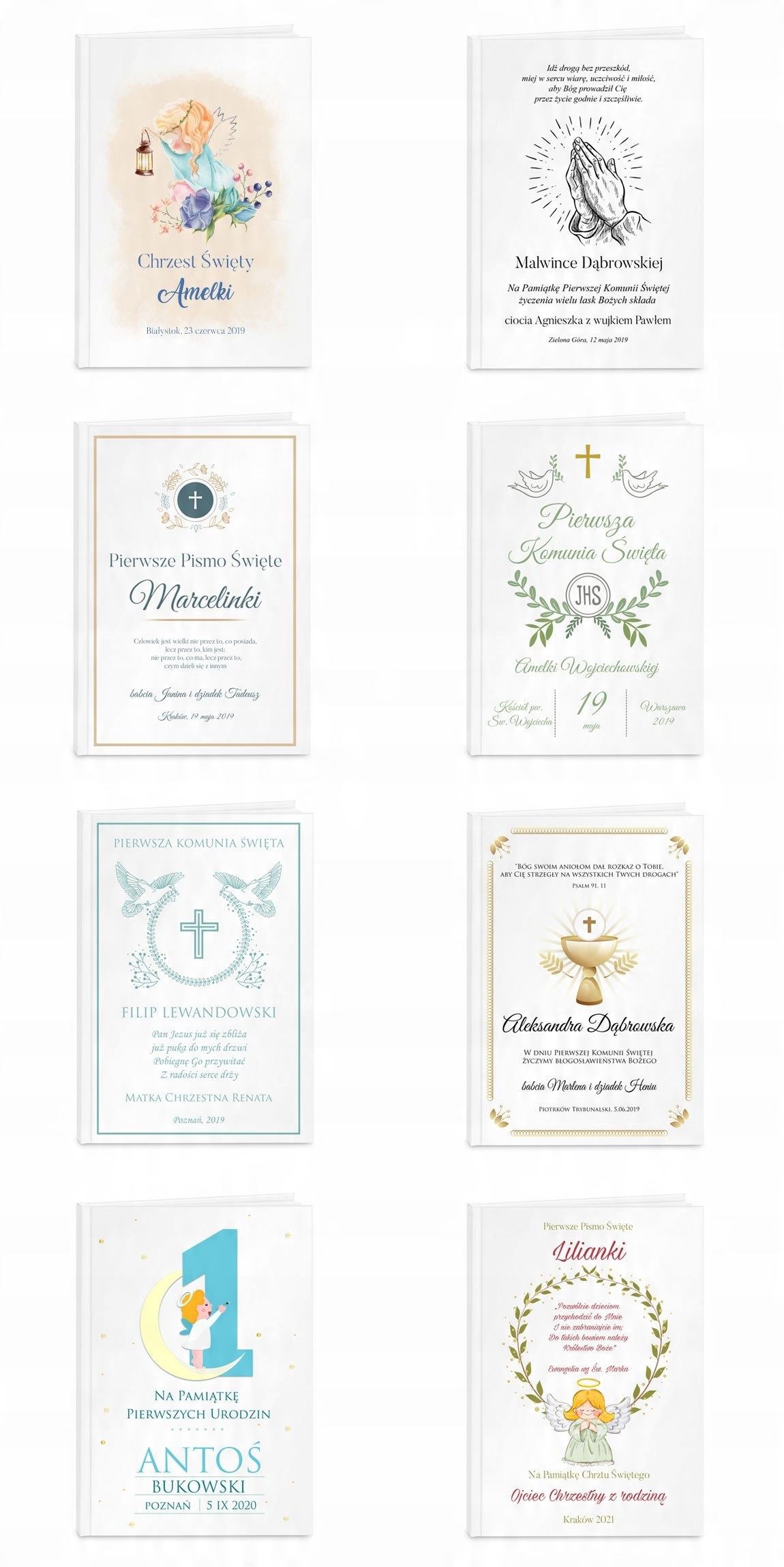 Детская Библия создана для самых требовательных читателей. Почти каждая страница покрыта иллюстрациями ярких цветов. Благодаря высокой четкости текста читать его легко и приятно. Мы сделаем для вас самокачественную специальную печать на обложке. Персонализированная Библия — идеальный подарок на Крещение или первое причастие.