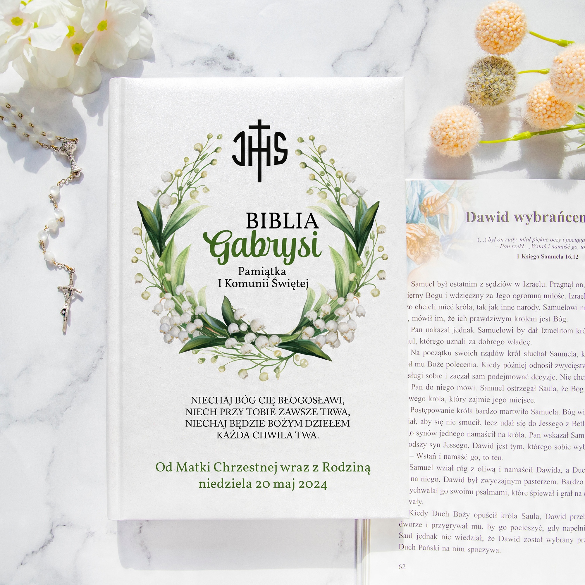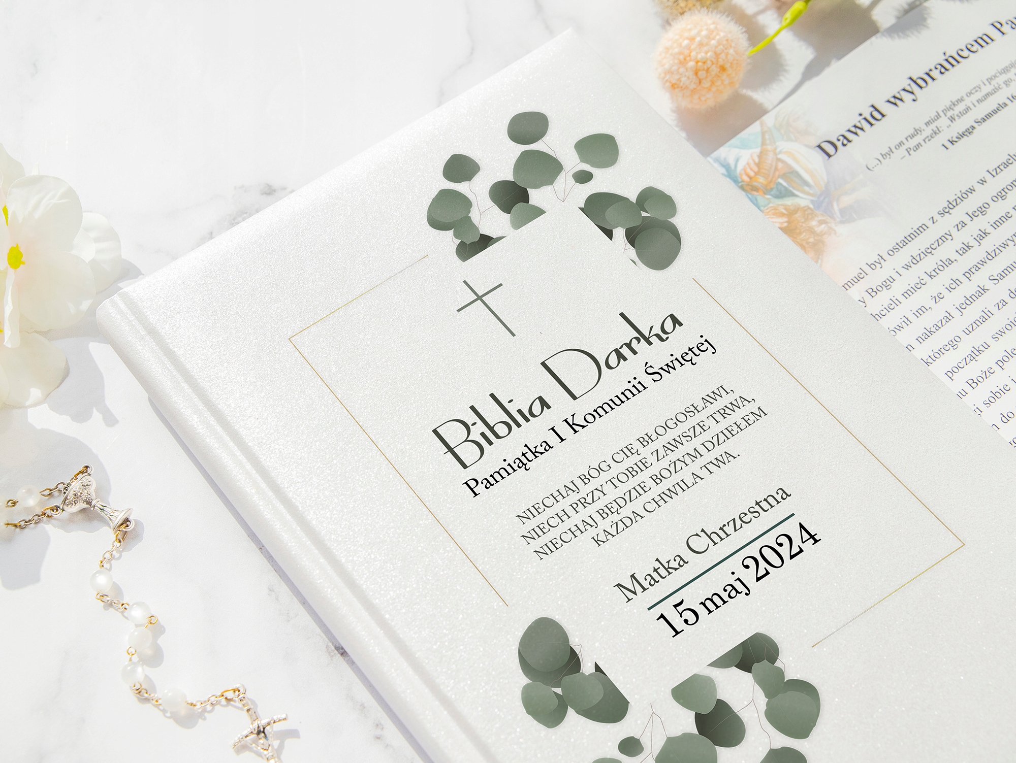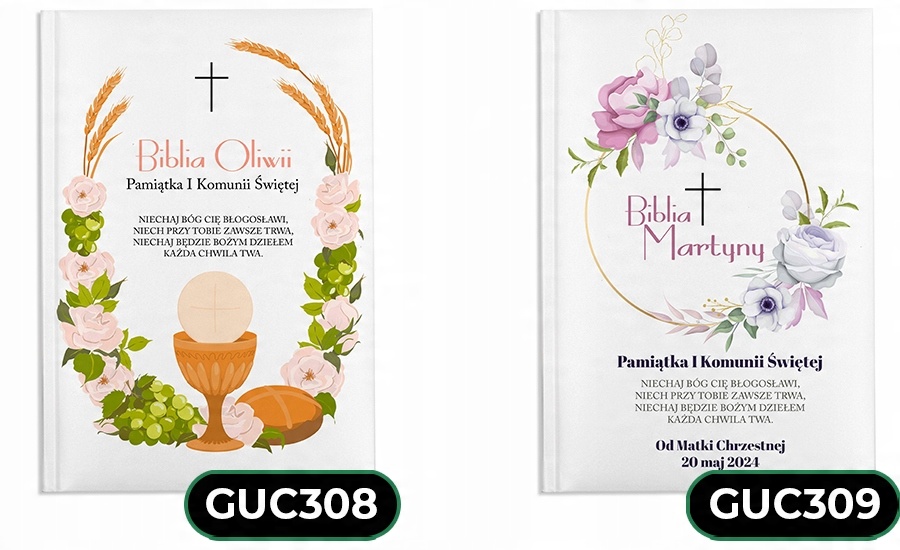 На обложке Библии есть цитата, и ее можно персонализировать, указав дату первого причастия, выбранное имя ребенка и фотографию. Новейшая технология цифровой УФ-печати позволяет сохранять чрезвычайно яркие, выразительные цвета, которые не выгорают. Высочайшее качество изготовления. Лучший подарок/сувенир к Святому Причастию.