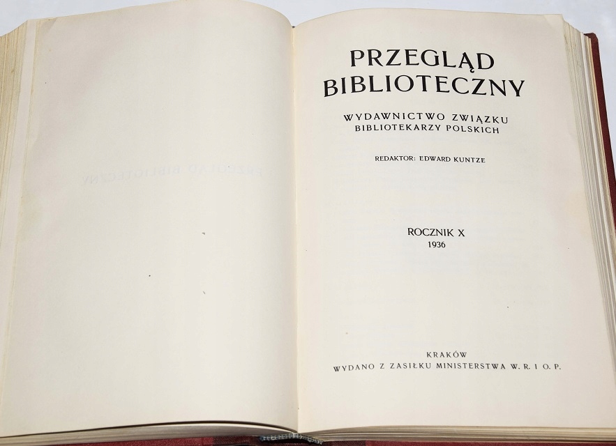ОБЗОР БИБЛИОТЕКИ. ИЗДАТЕЛЬСКИЙ ДОМ АССОЦИАЦИИ ПОЛЬСКИХ БИБЛИОТЕК. ЕЖЕГОДНИК IXX/1935-1936. РЕДАКТОР ЭДВАРД КУНЦЕ.