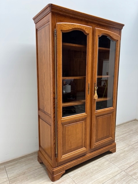 Стильный книжный шкаф-витрина. Очень хорошенькая. Его состояние подробно показано на фотографиях. Она хорошо сохранилась. Внутри четыре полки, регулируемые по высоте. Замок функциональный, в комплекте есть ключ. он доедет к новому владельцу в целости и сохранности. Готова к установке.